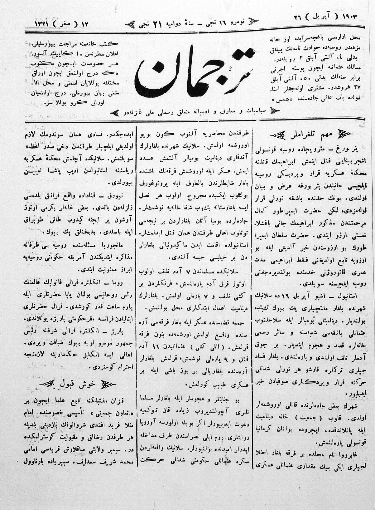 The name of the newspaper changed to Tercüman-ı Ahval-i Zaman in 1905. In 1909, it started to be published under its first name, Tercüman.