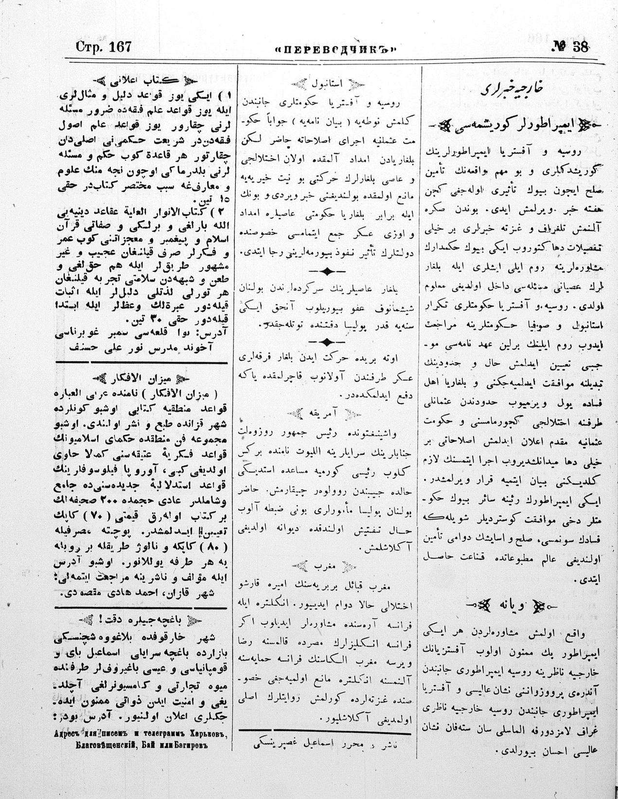 Turkish-Russian newspaper published in Crimea by İsmail Gaspıralı.