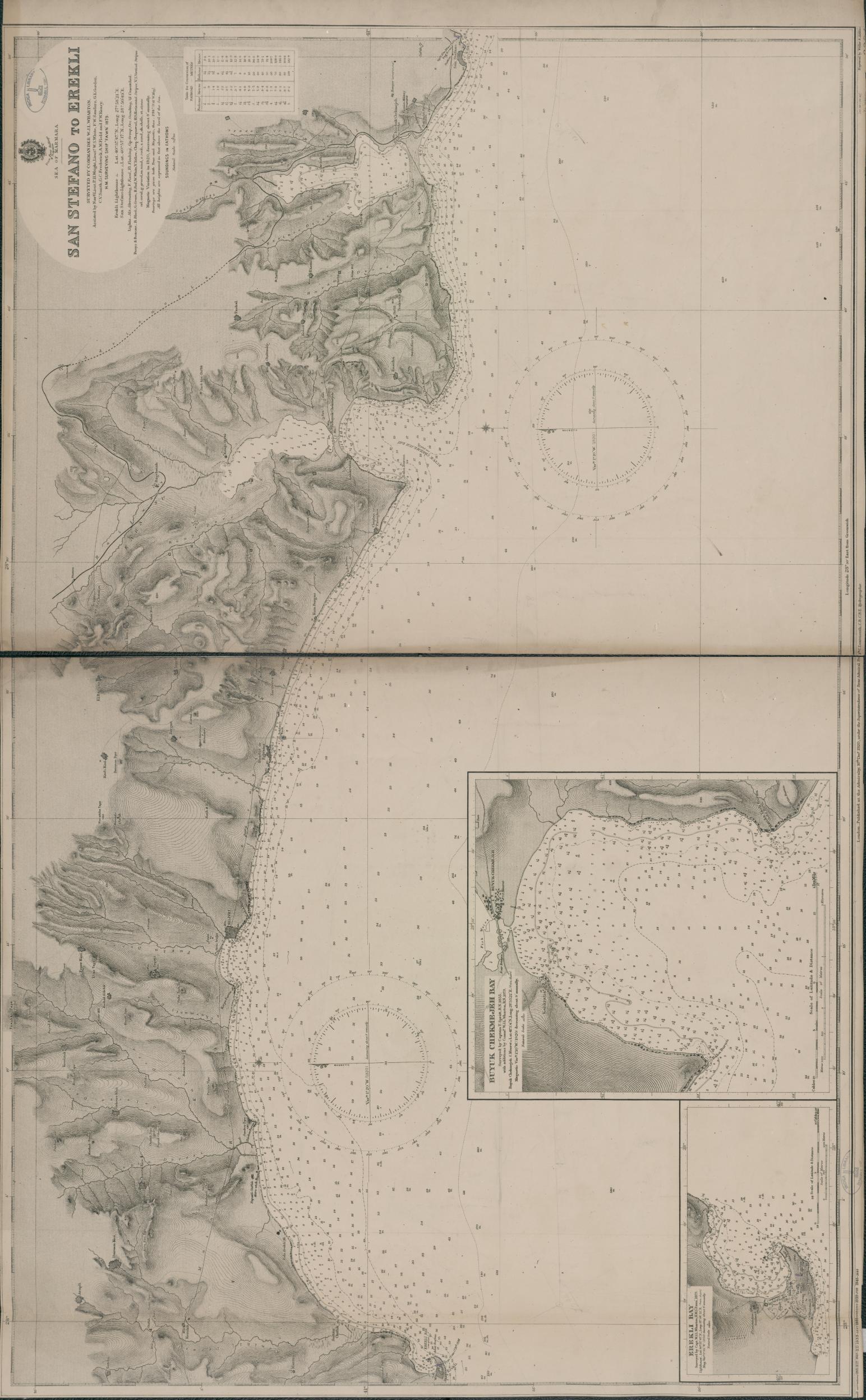 With: Buyuk Chekmejeh Bay, Scale 1:25,750.- Erekli Bay, Scale 1:24,290.