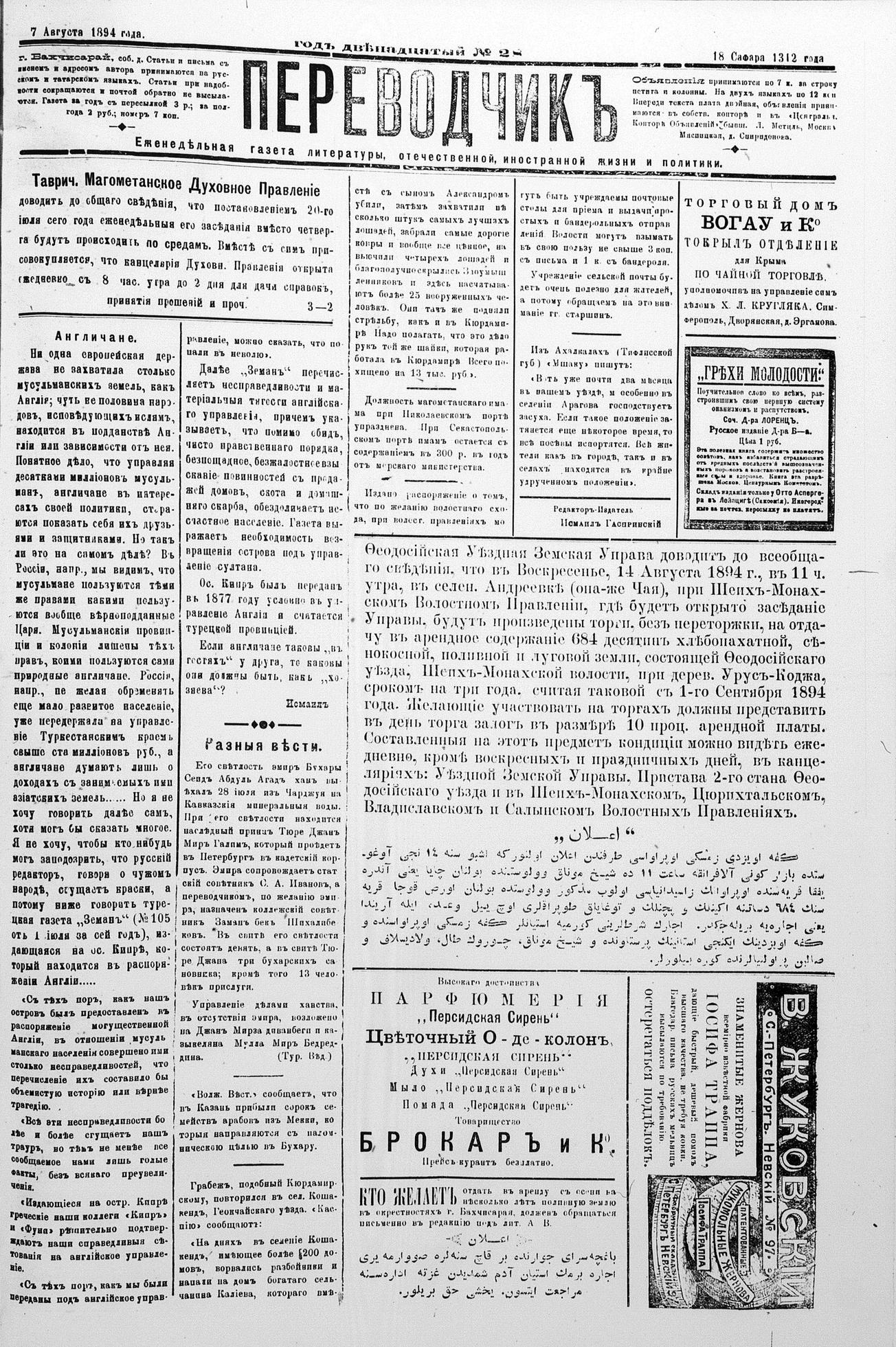 Turkish-Russian newspaper published in Crimea by İsmail Gaspıralı.
