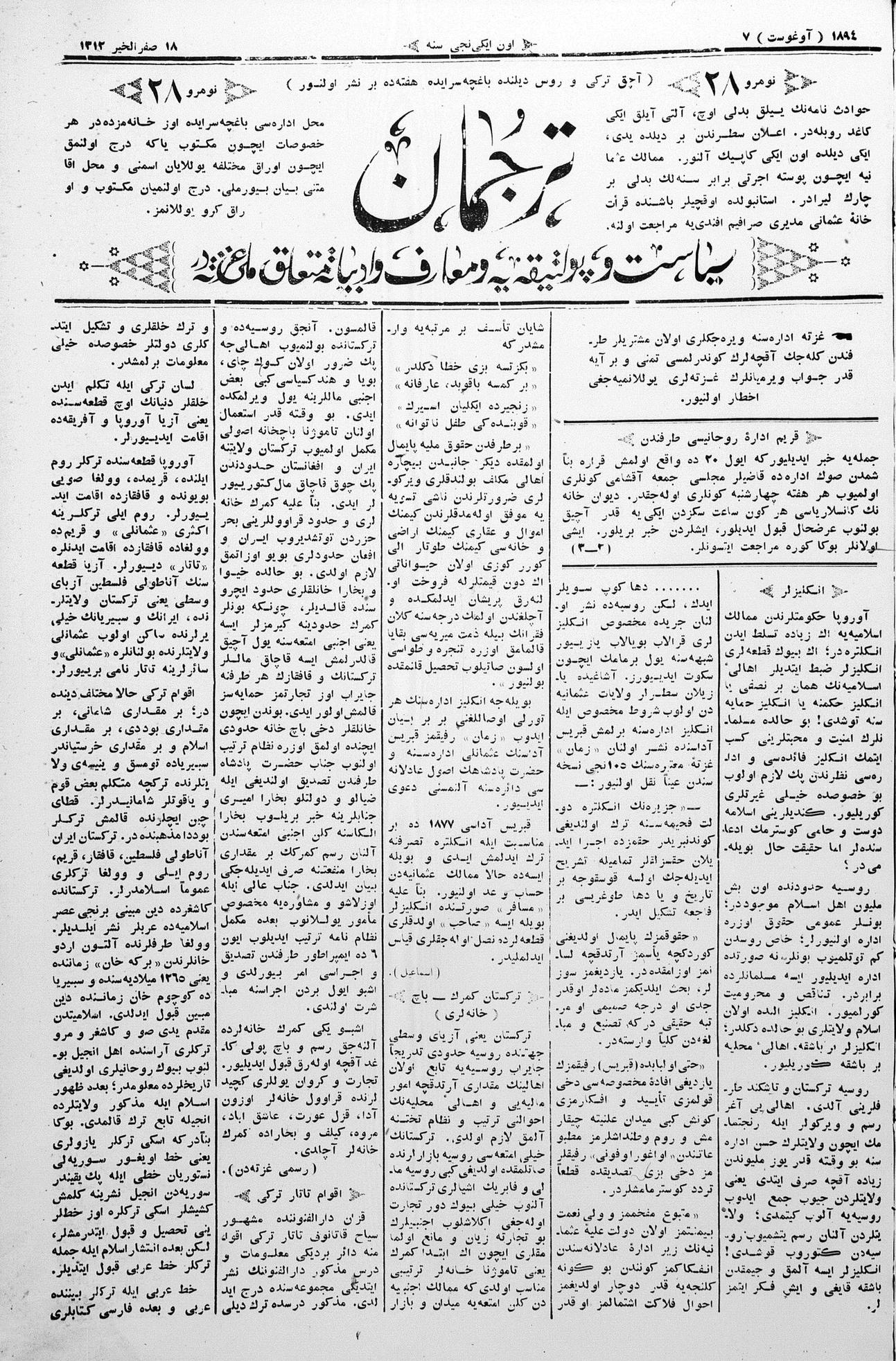 The name of the newspaper changed to Tercüman-ı Ahval-i Zaman in 1905. In 1909, it started to be published under its first name, Tercüman.