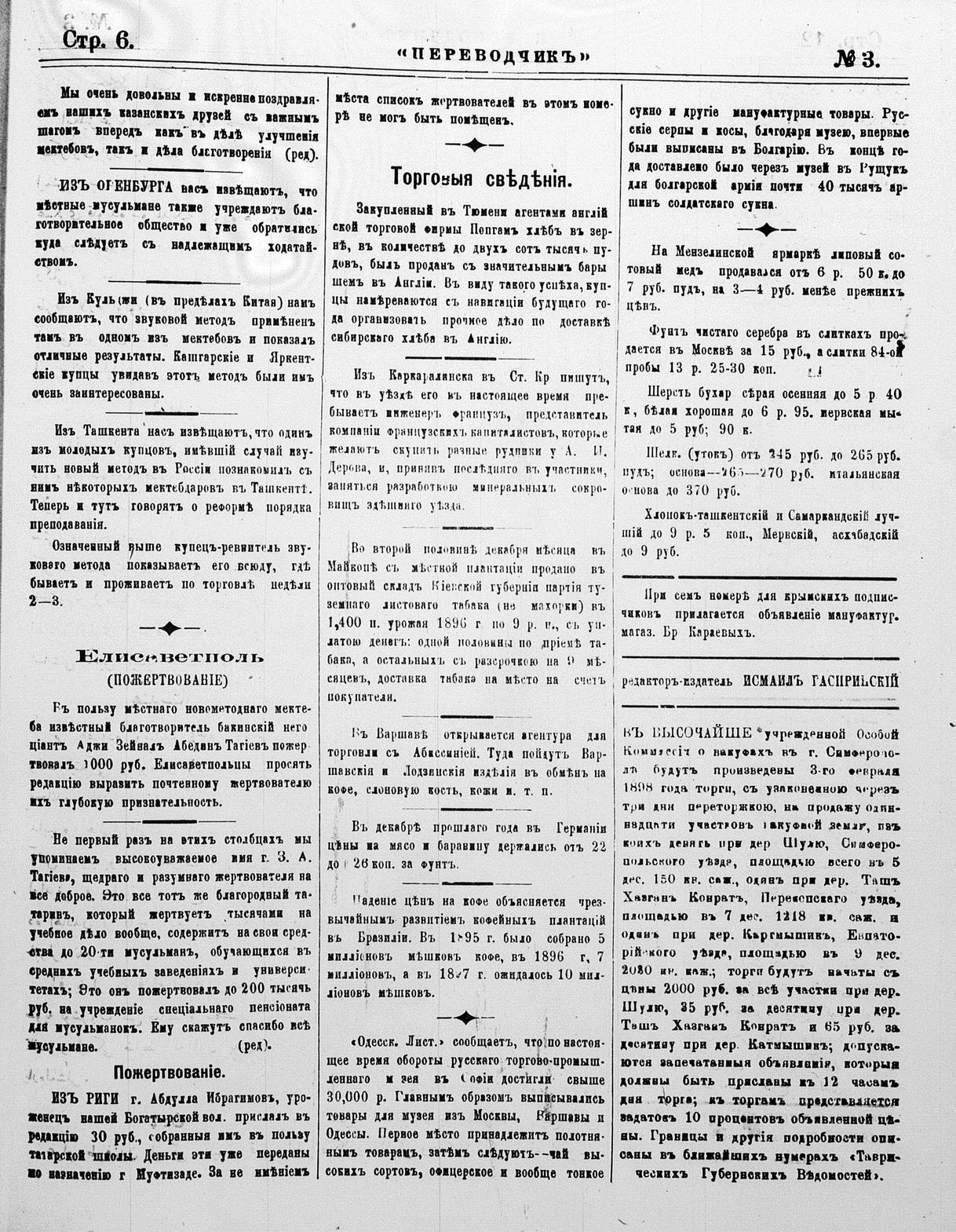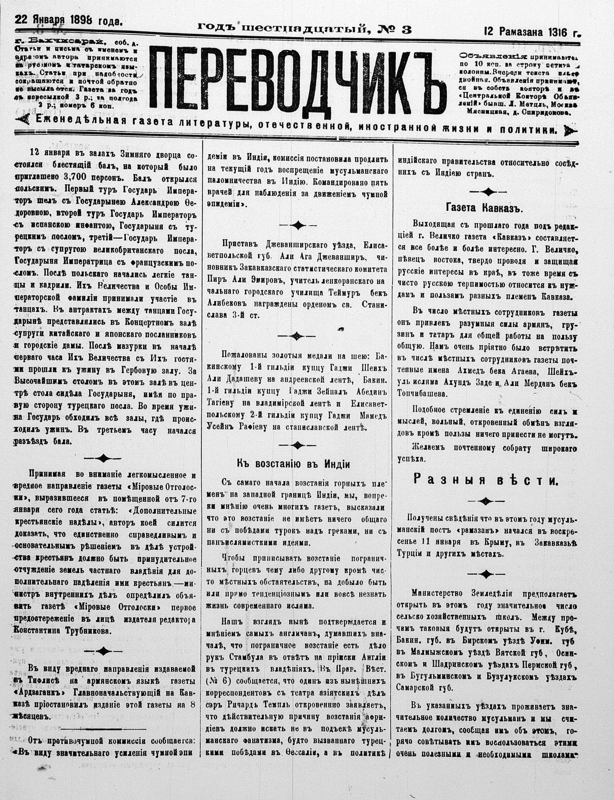 Turkish-Russian newspaper published in Crimea by İsmail Gaspıralı.