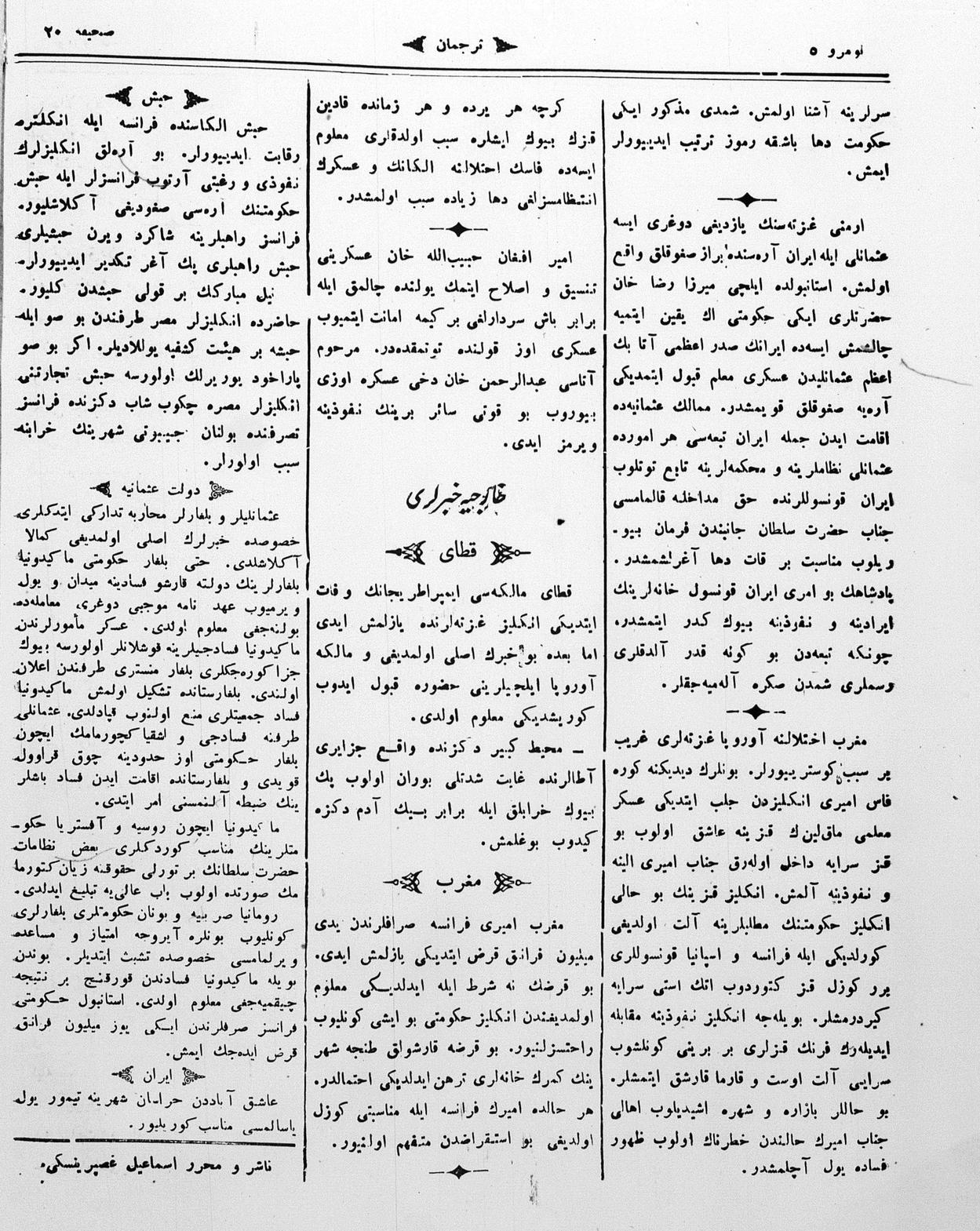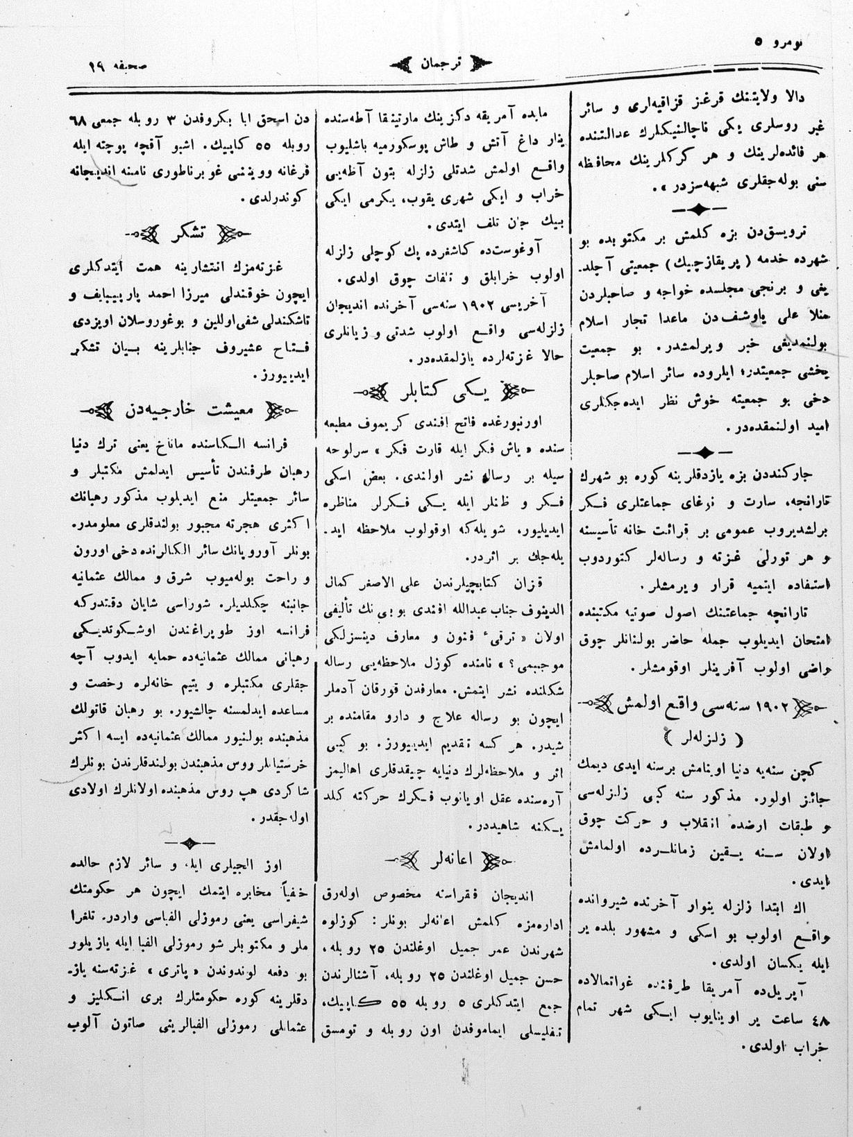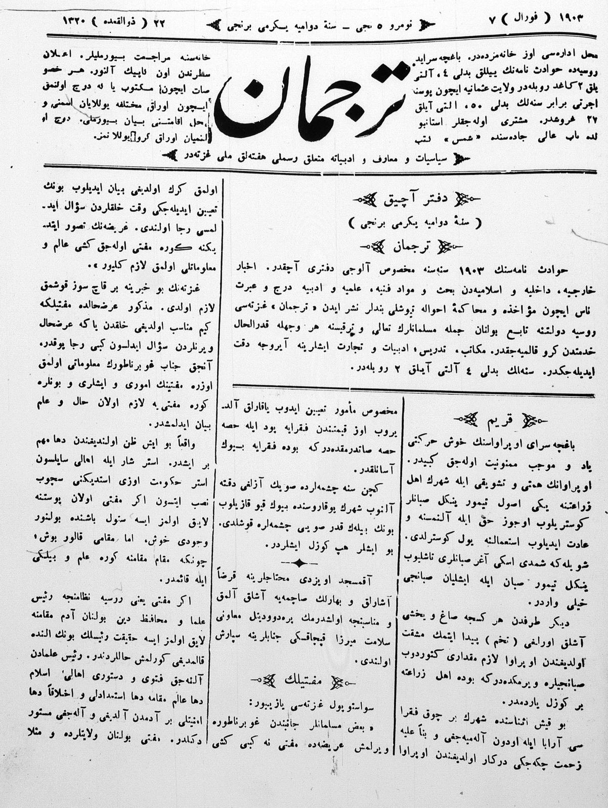 The name of the newspaper changed to Tercüman-ı Ahval-i Zaman in 1905. In 1909, it started to be published under its first name, Tercüman.