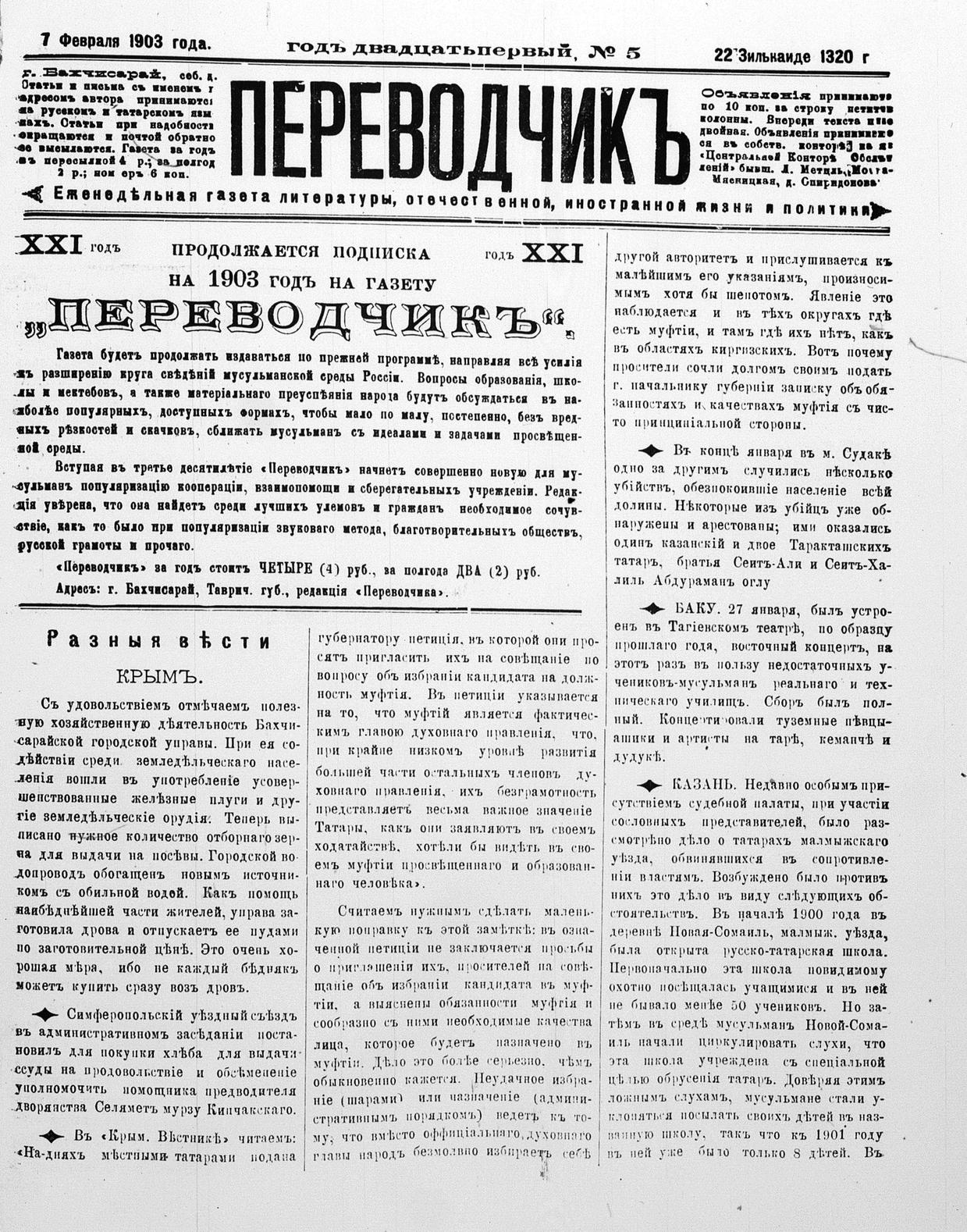 Turkish-Russian newspaper published in Crimea by İsmail Gaspıralı.