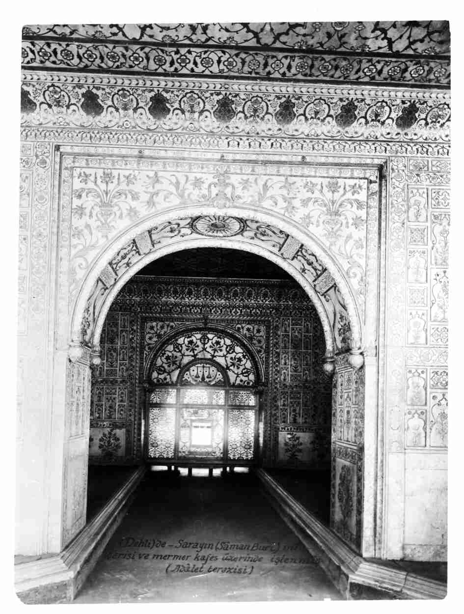 Delhi Sarayı`nın Samanburcu`nun içerisi ve mermer kafes üzerine işlenmiş adalet terazisi