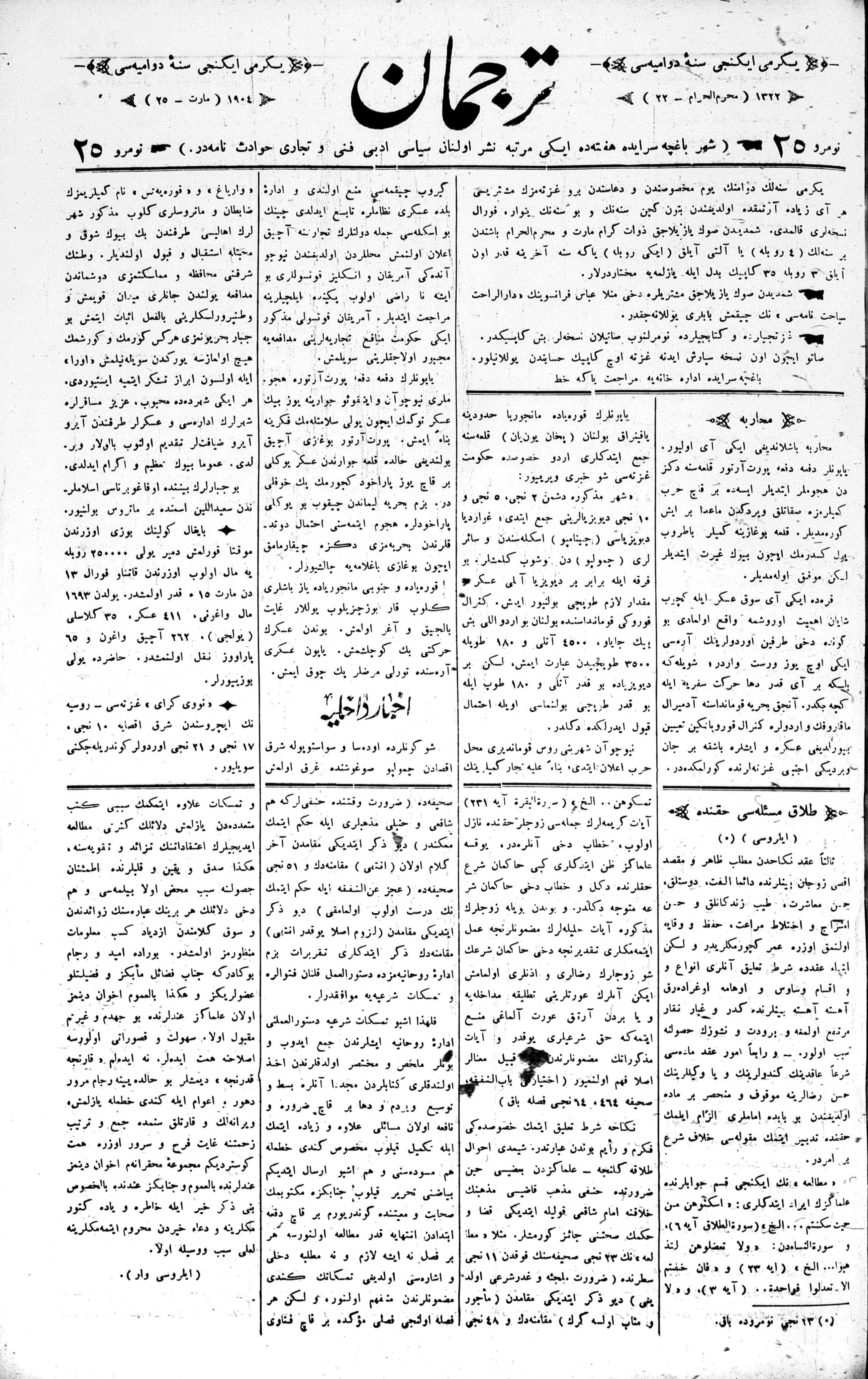 Tercüman, 26 March 1904 Year 22 No 25