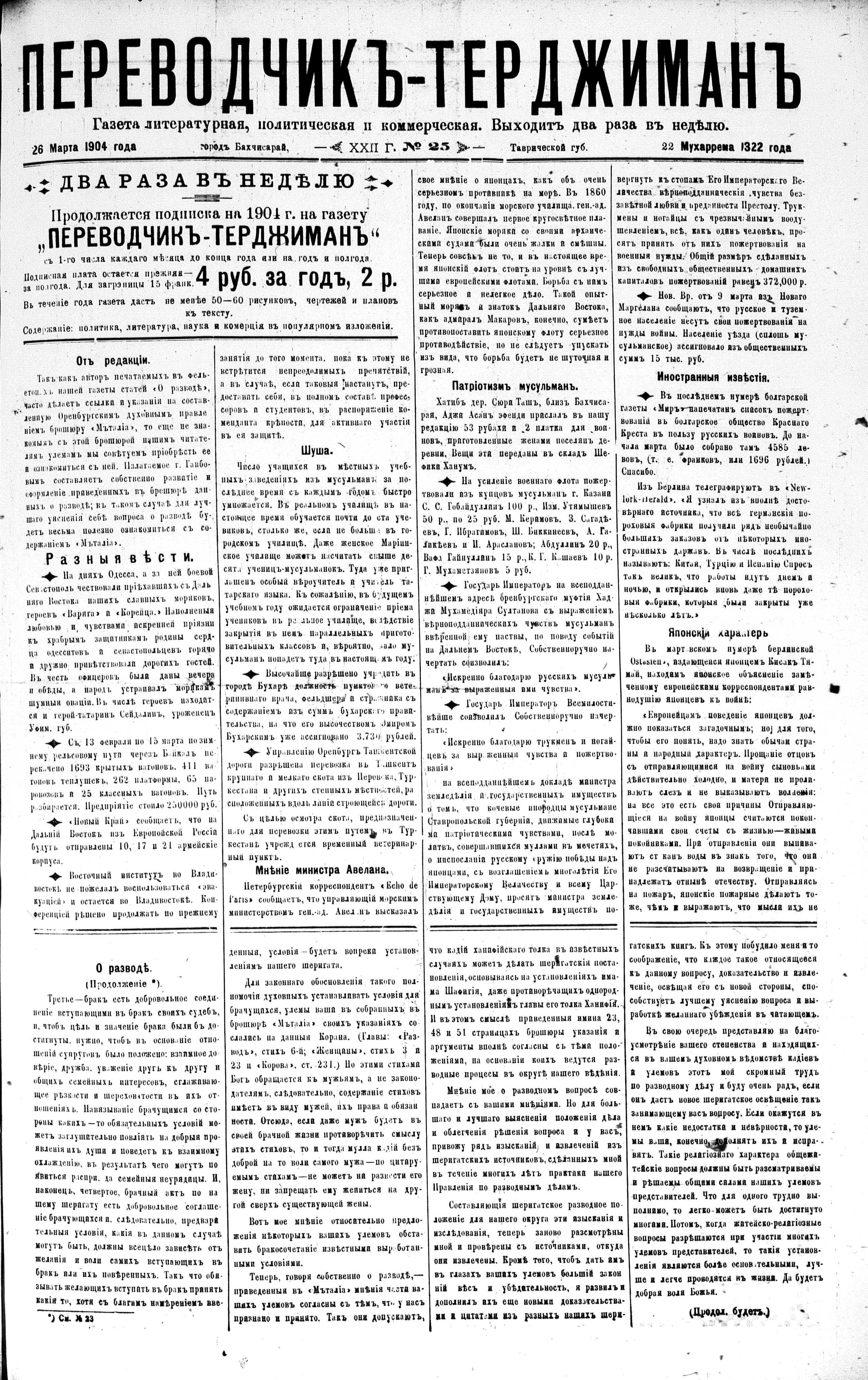 Turkish-Russian newspaper published in Crimea by İsmail Gaspıralı.
