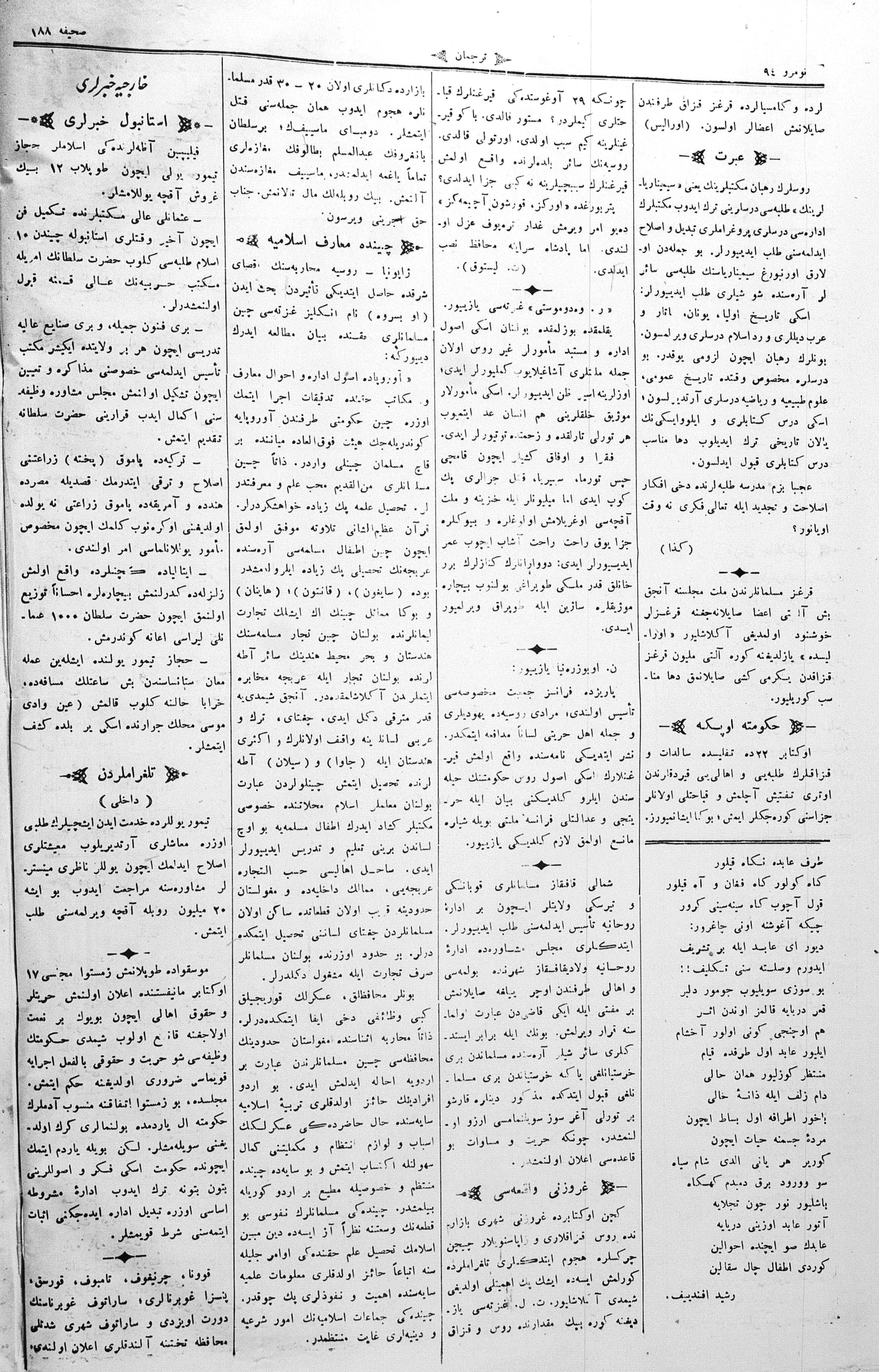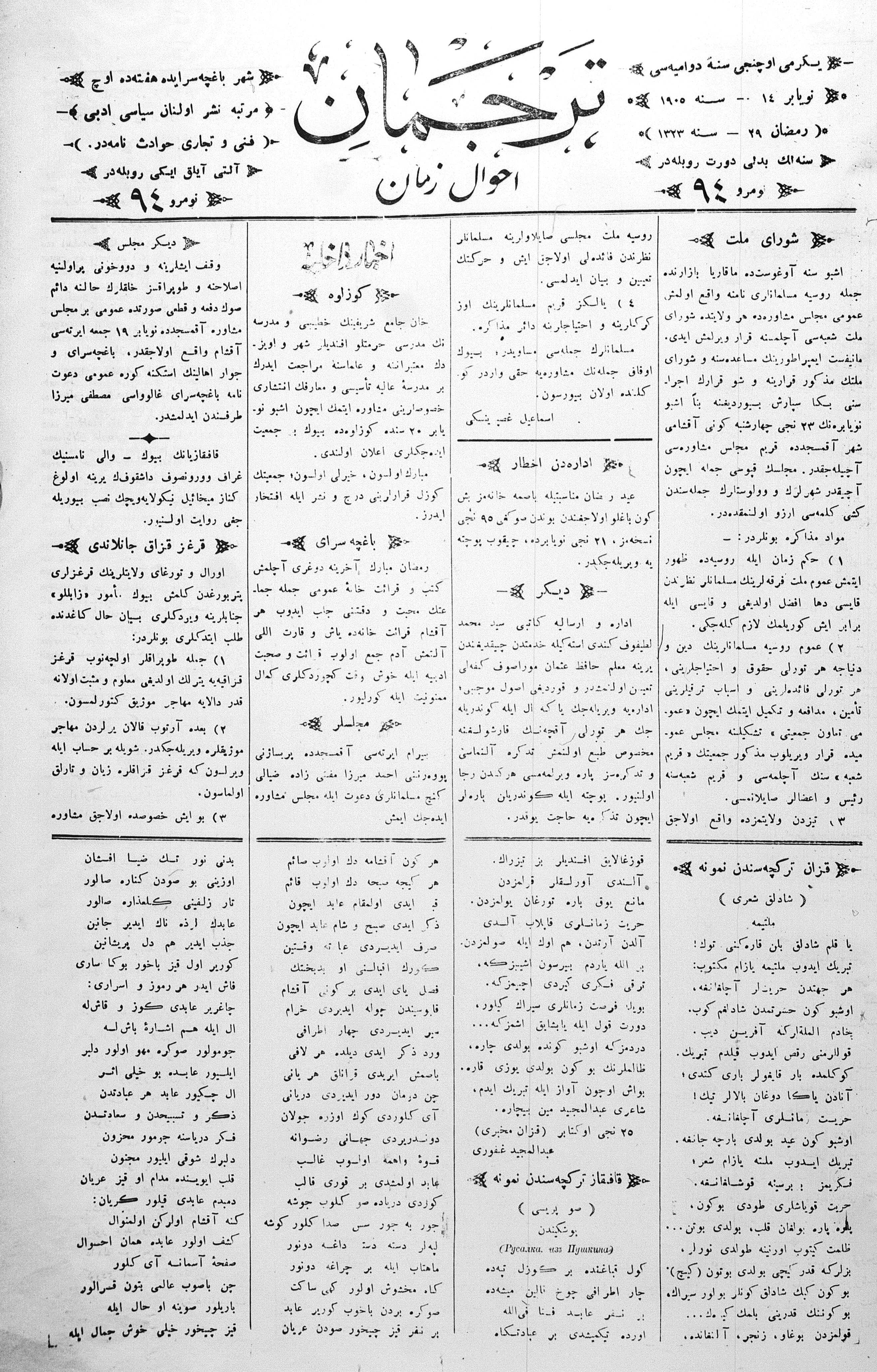 The name of the newspaper changed to Tercüman-ı Ahval-i Zaman in 1905. In 1909, it started to be published under its first name, Tercüman.