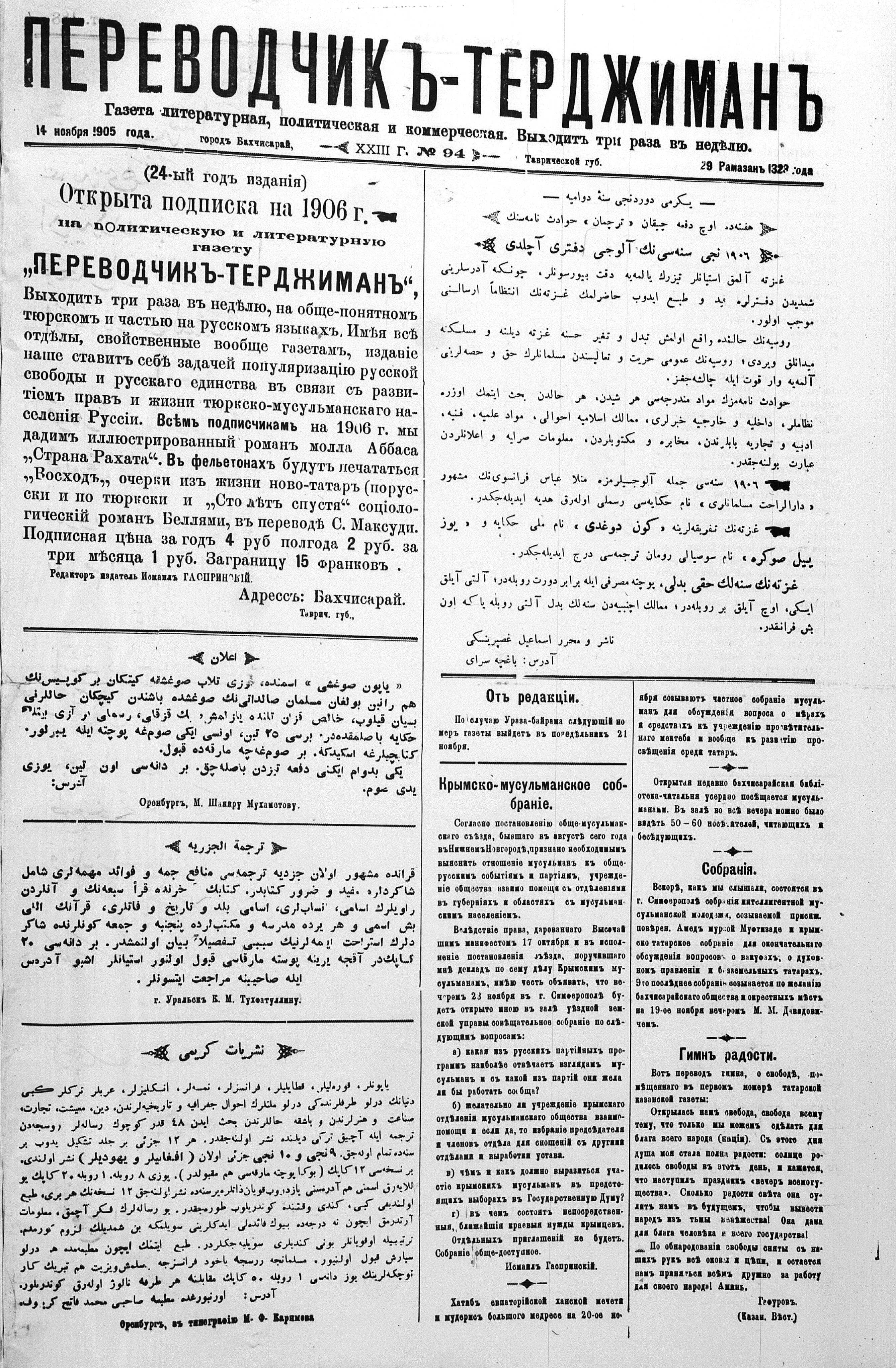 Turkish-Russian newspaper published in Crimea by İsmail Gaspıralı.