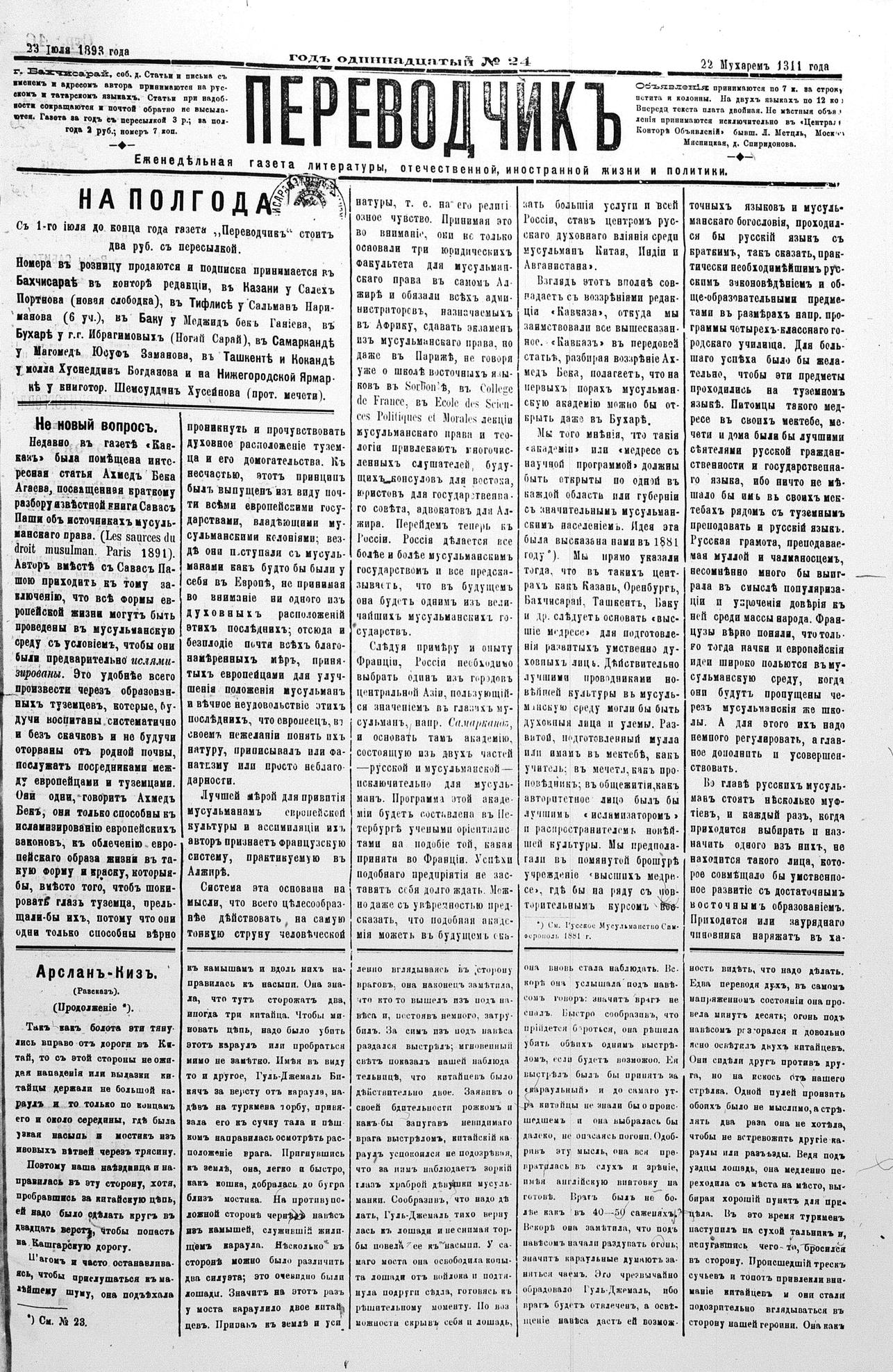 Tercüman, 23 July 1893 Year 11 No 24