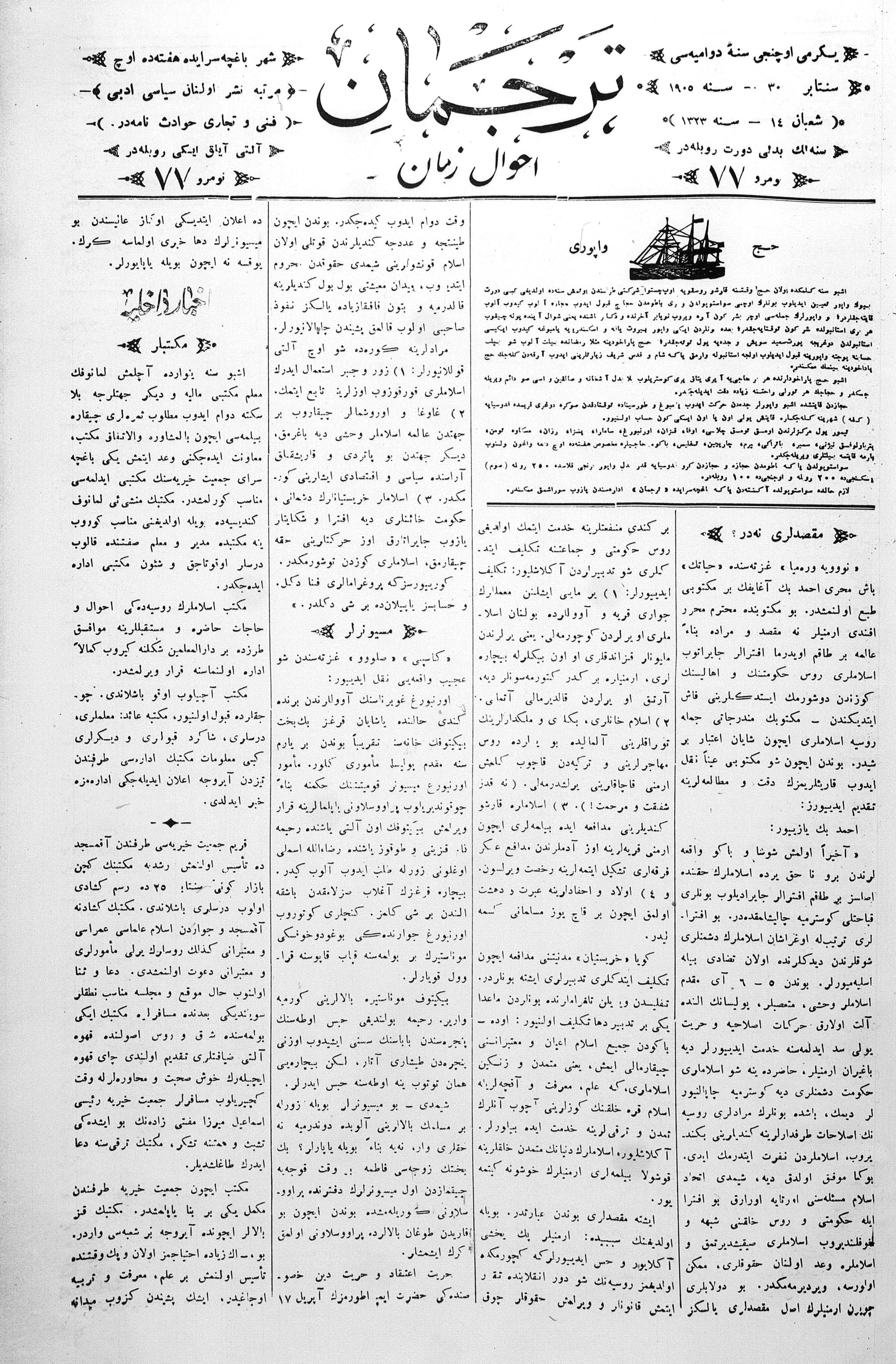 Tercüman, 30 September 1905 Year 23 No 77