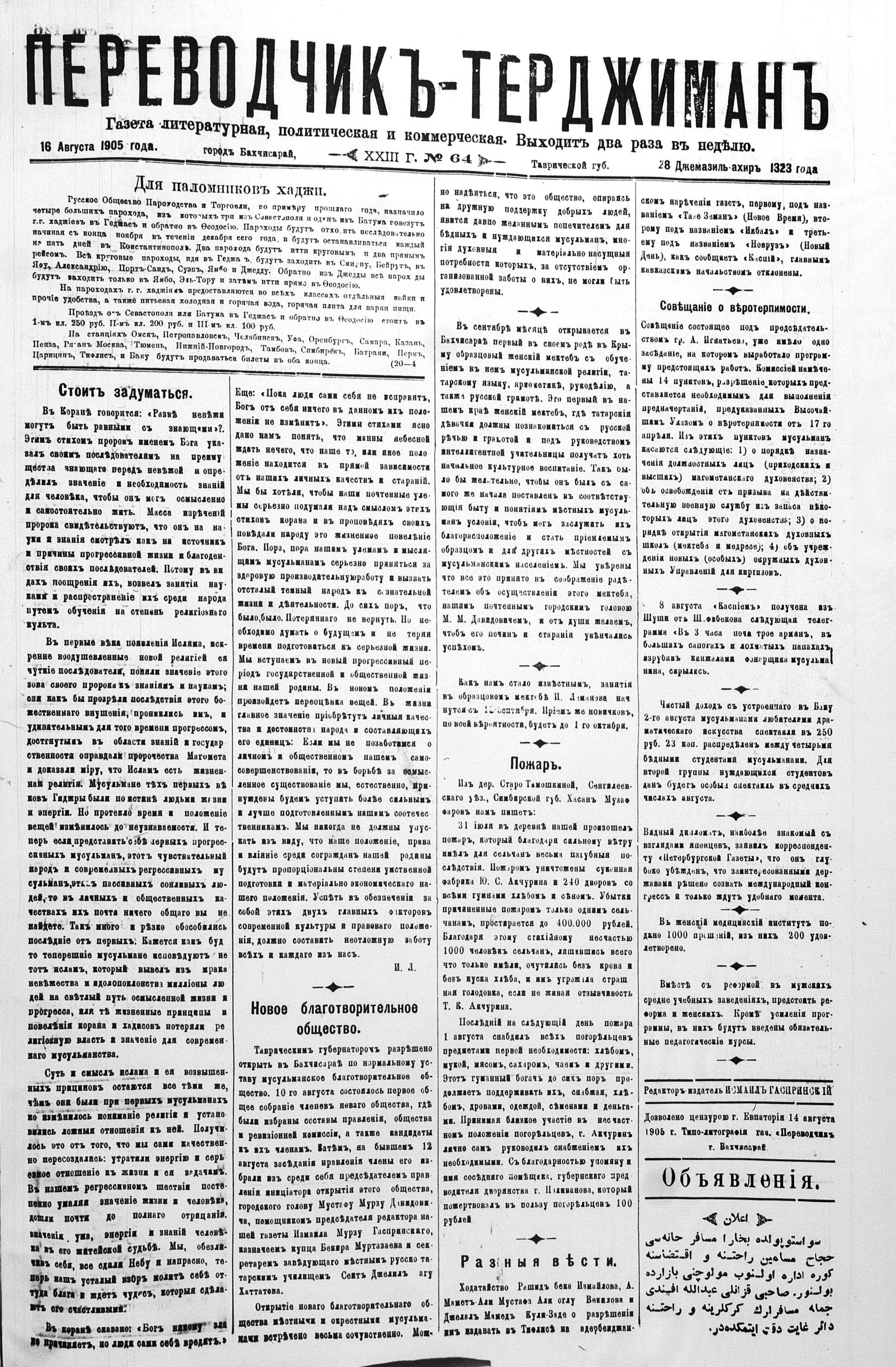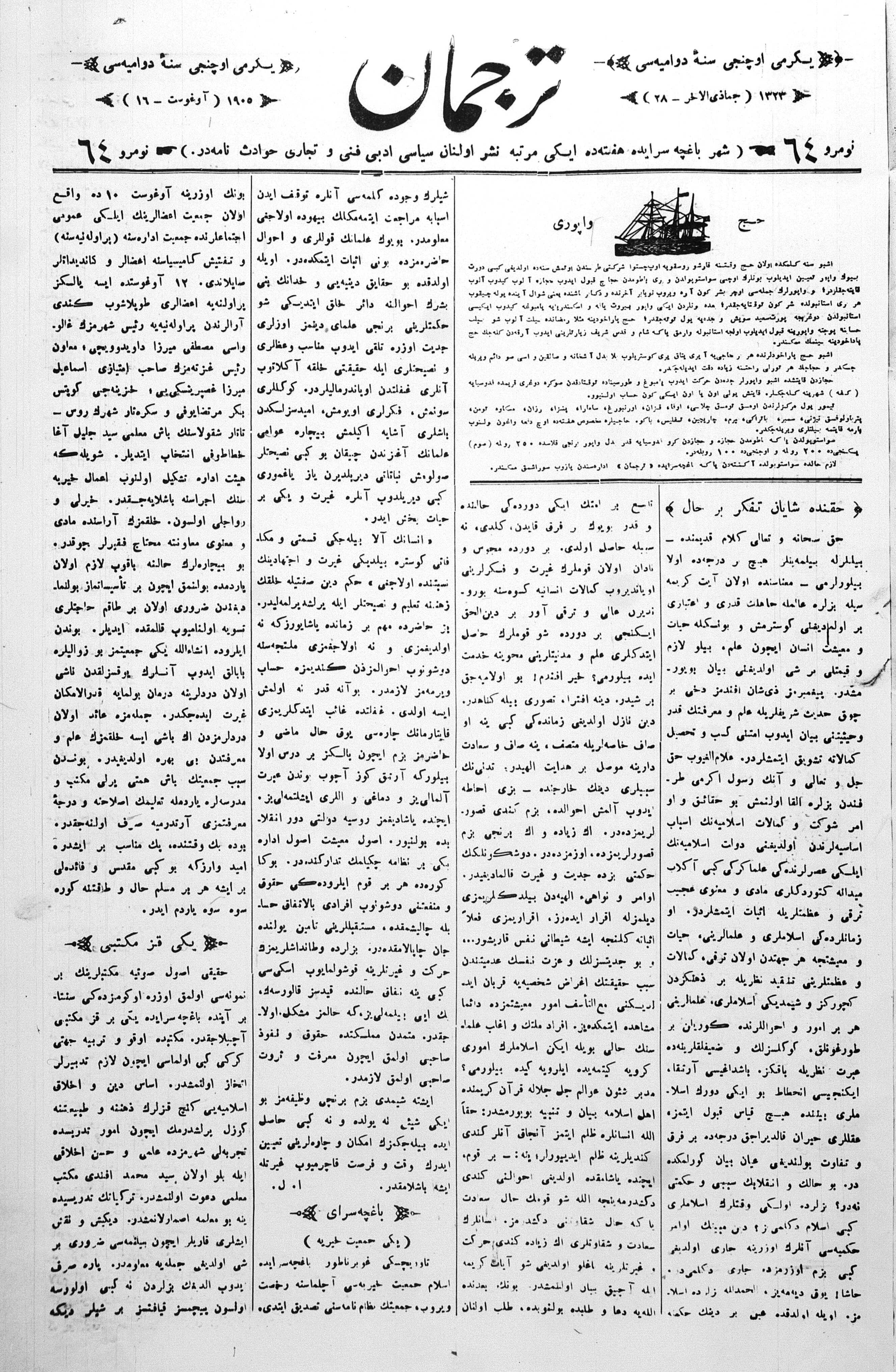 Tercüman, 16 August 1905 Year 23 No 64