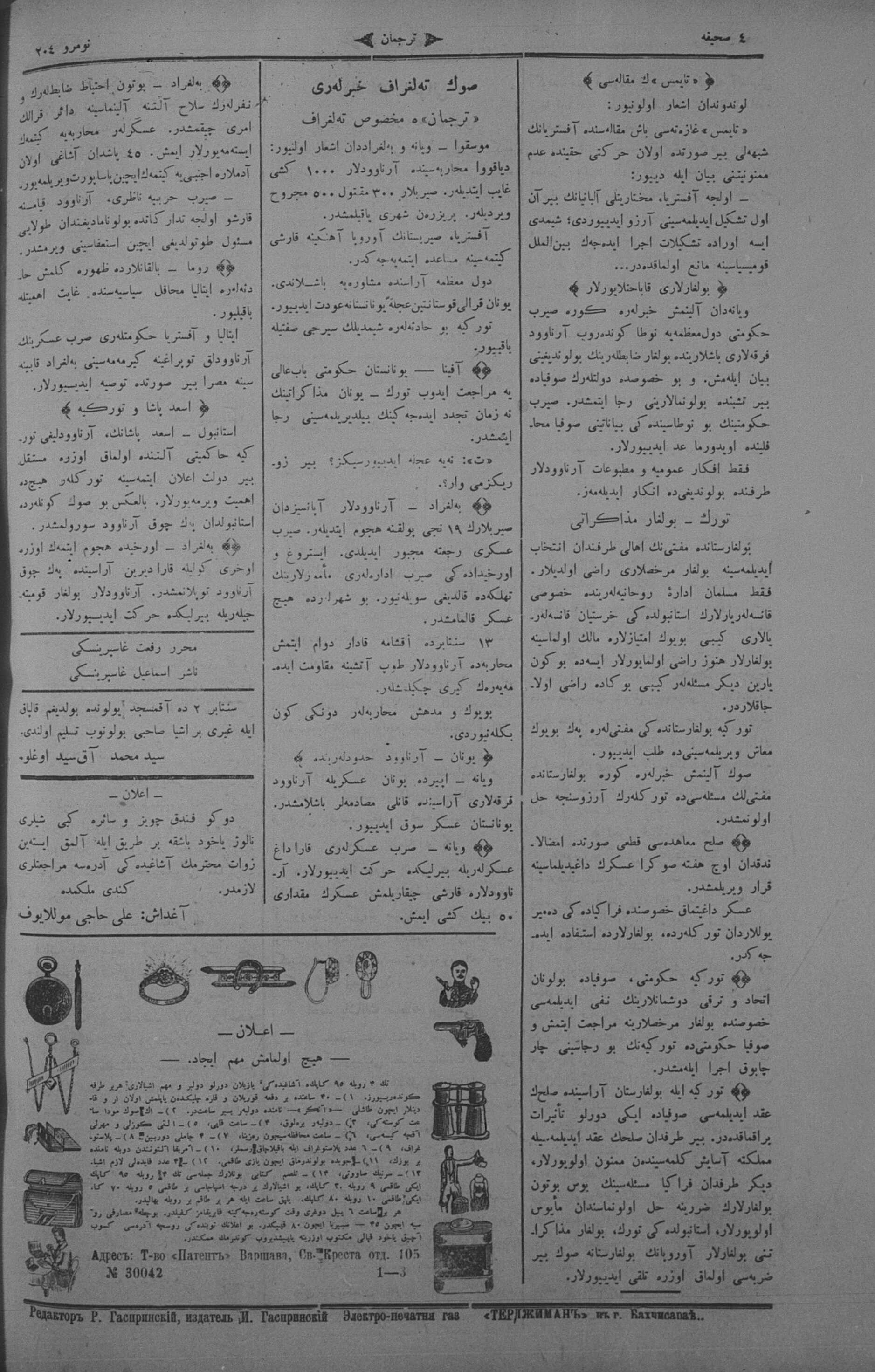 Different spellings of Tercüman: Terdzhiman, Terjuman, Perevodçik and Terjiman.