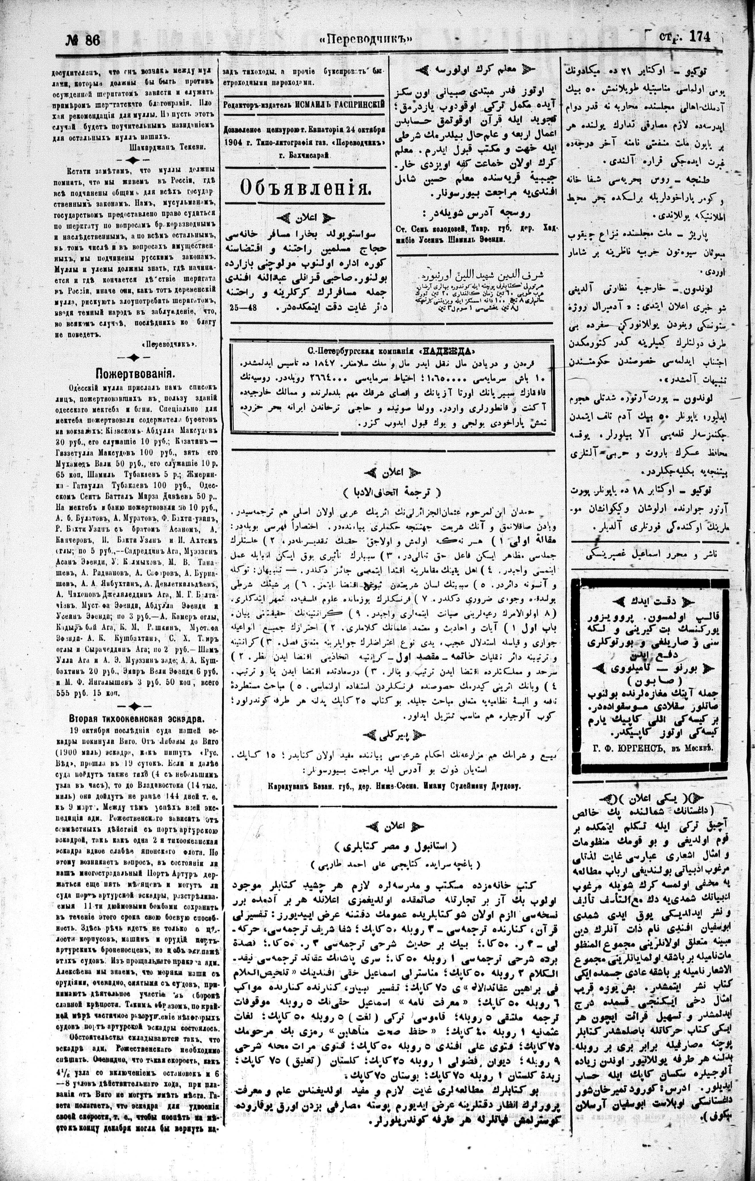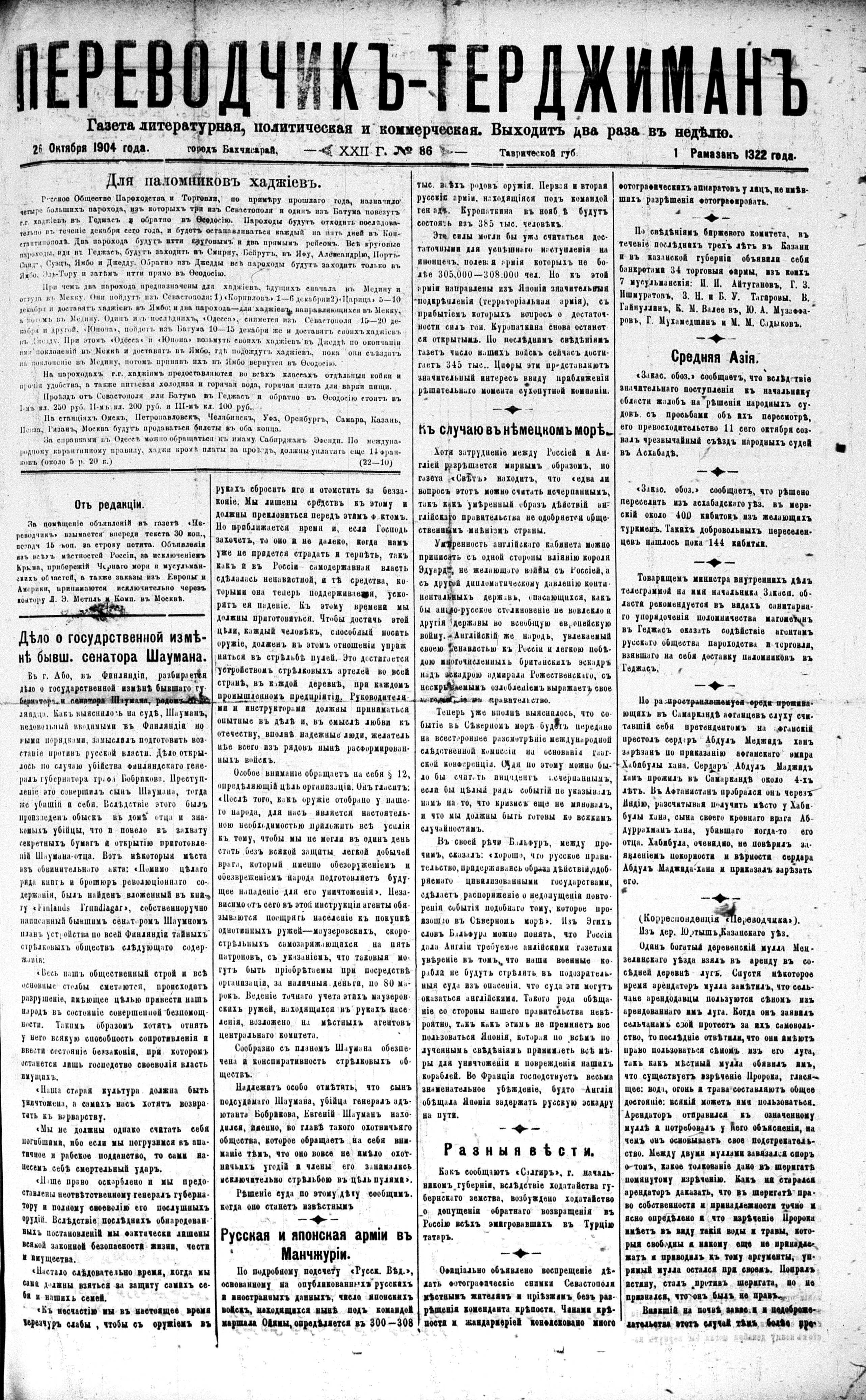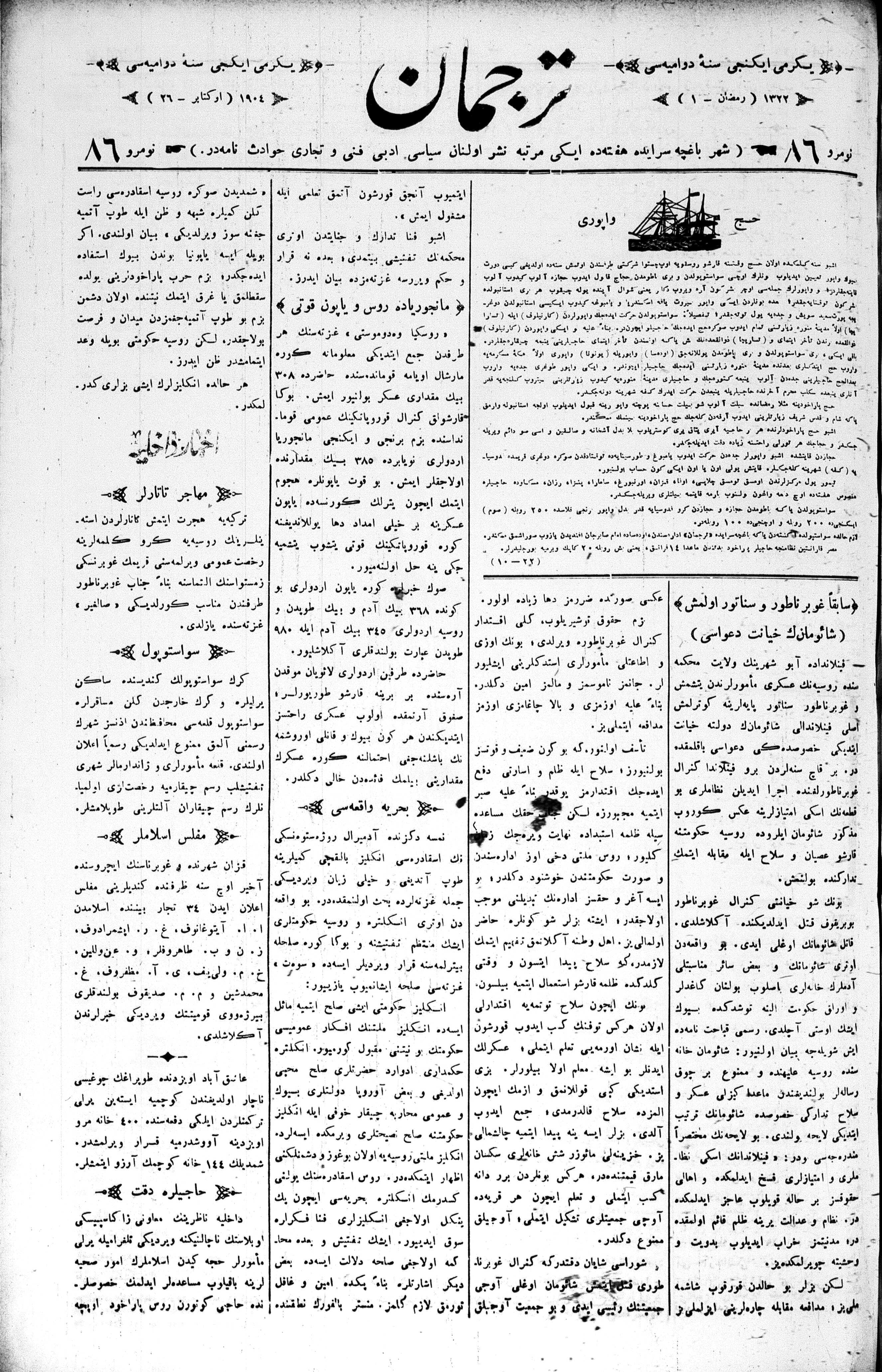 Tercüman, 26 October 1904 Year 22 No 86