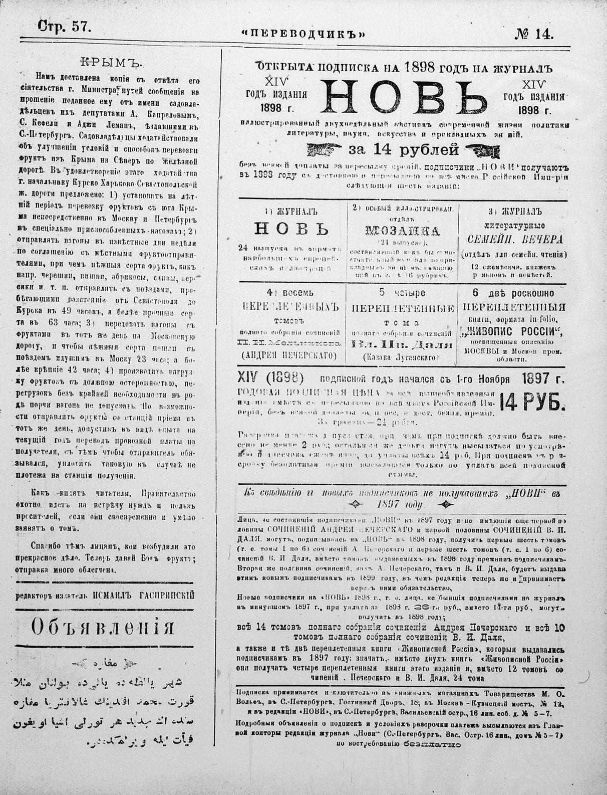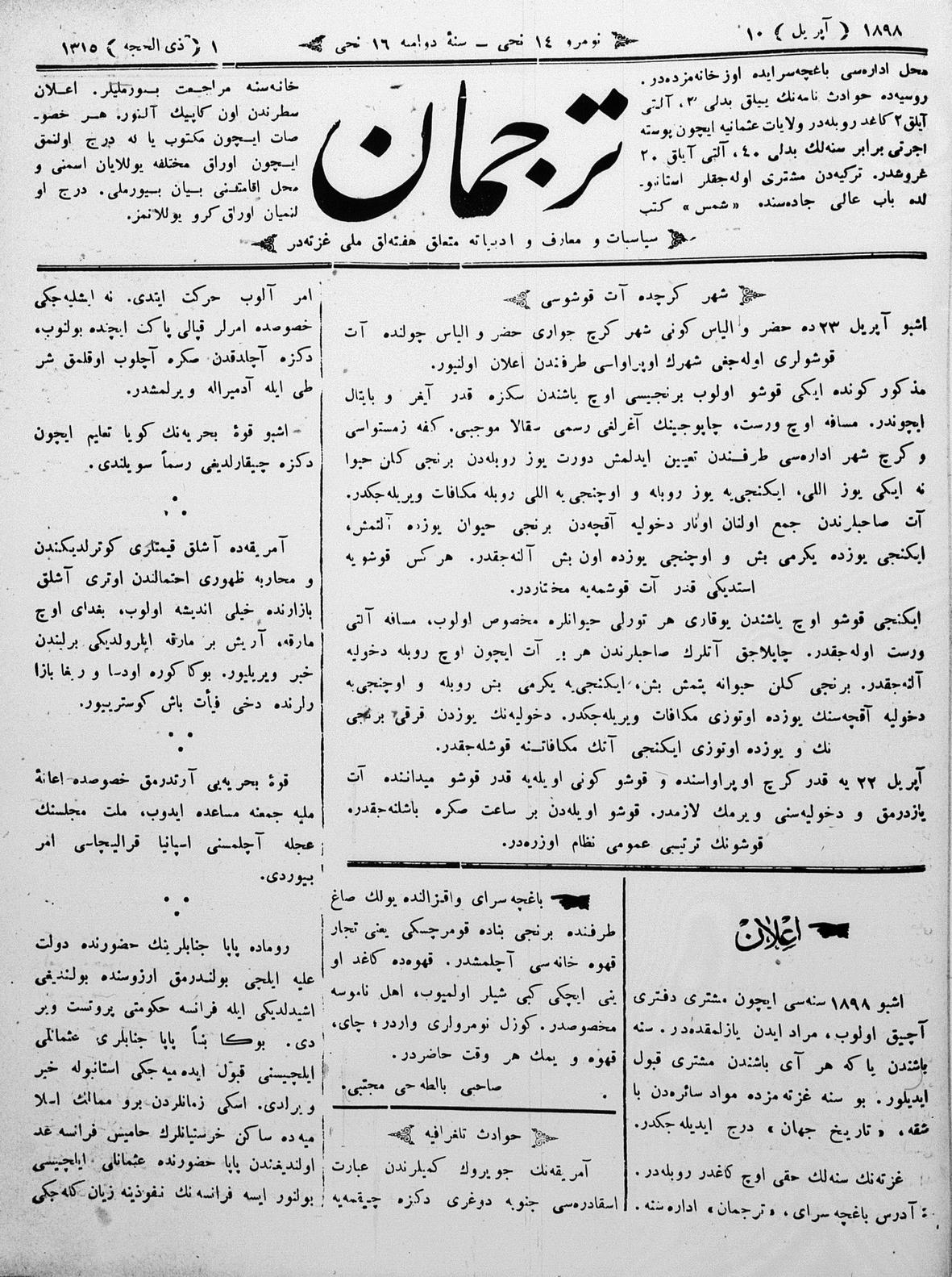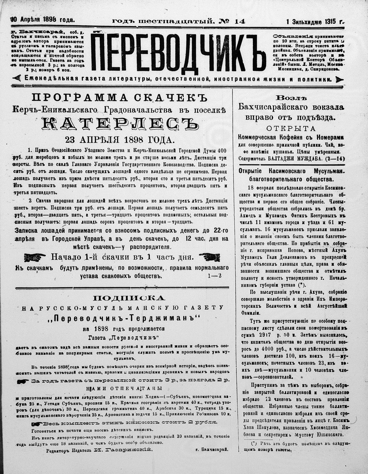 Turkish-Russian newspaper published in Crimea by İsmail Gaspıralı.