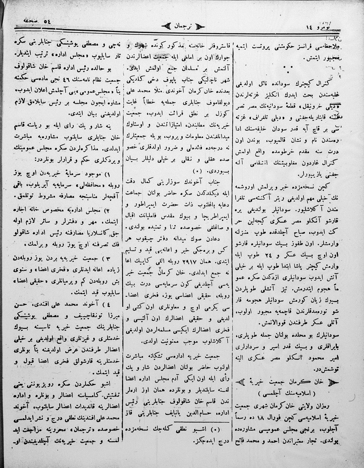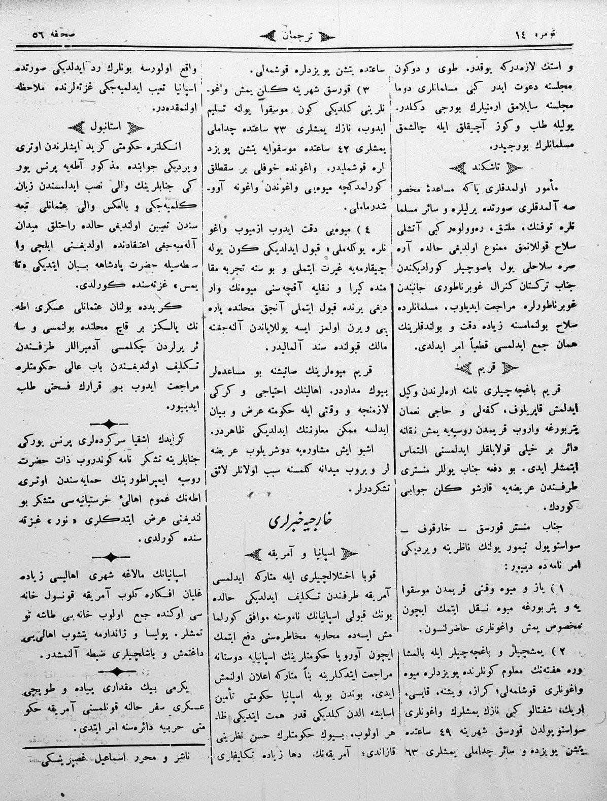 The name of the newspaper changed to Tercüman-ı Ahval-i Zaman in 1905. In 1909, it started to be published under its first name, Tercüman.