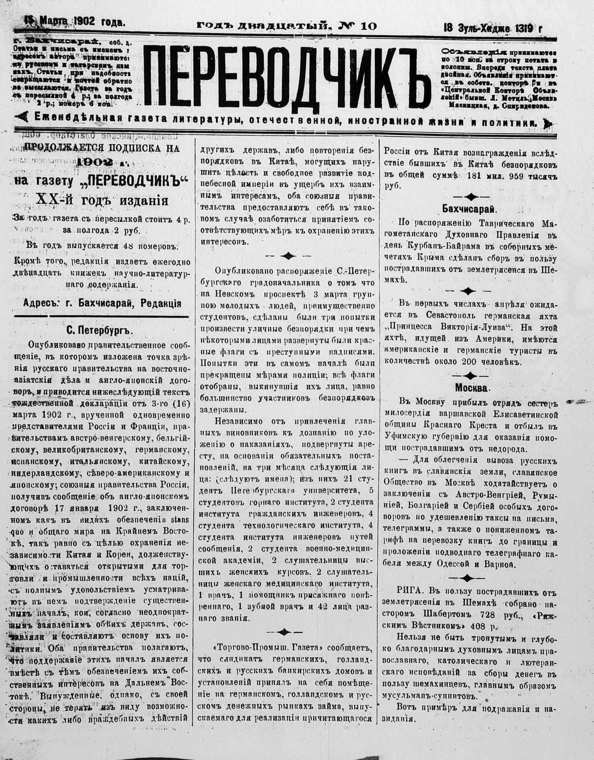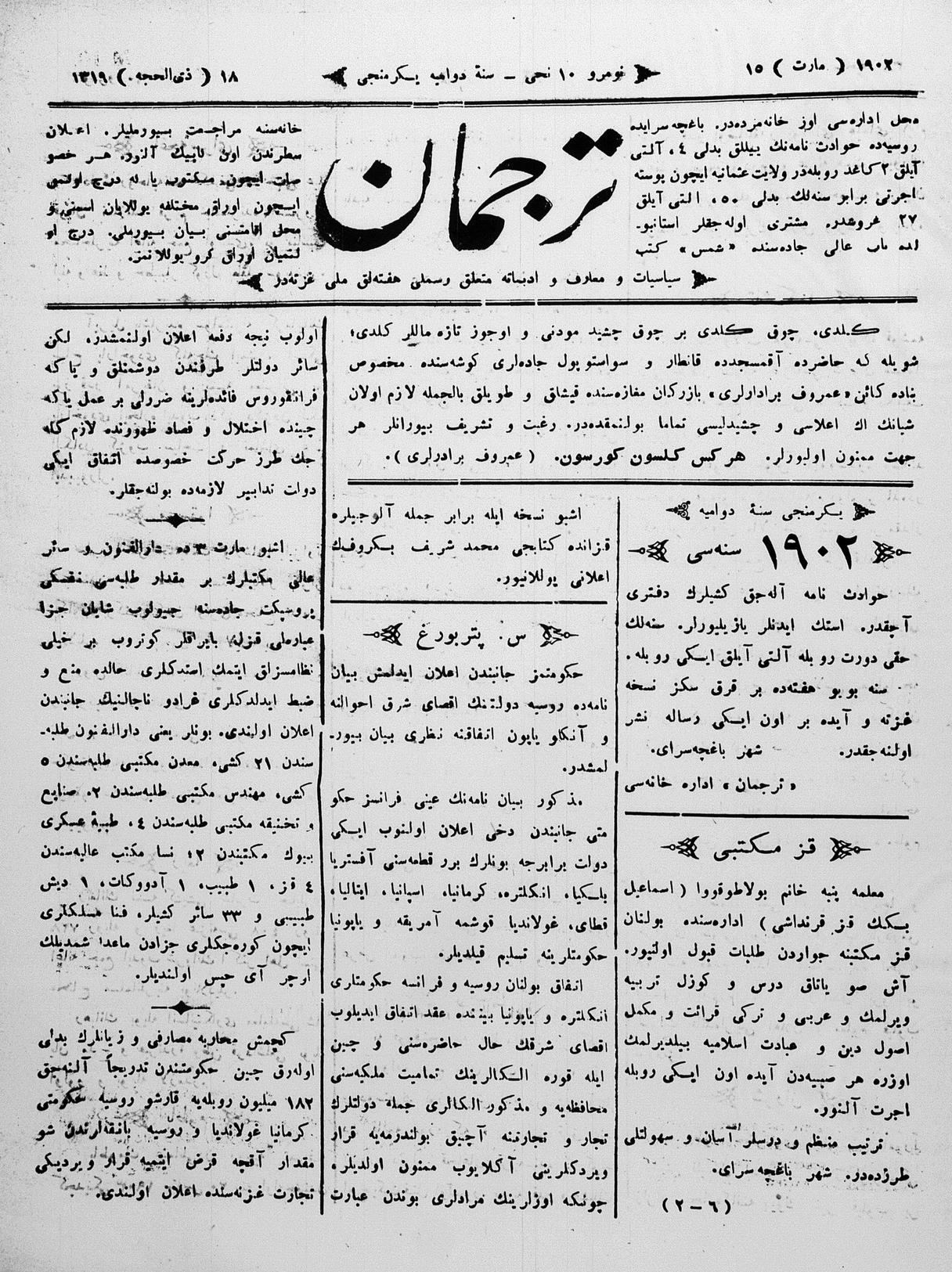 Tercüman, 15 March 1902 Year 20 No 10