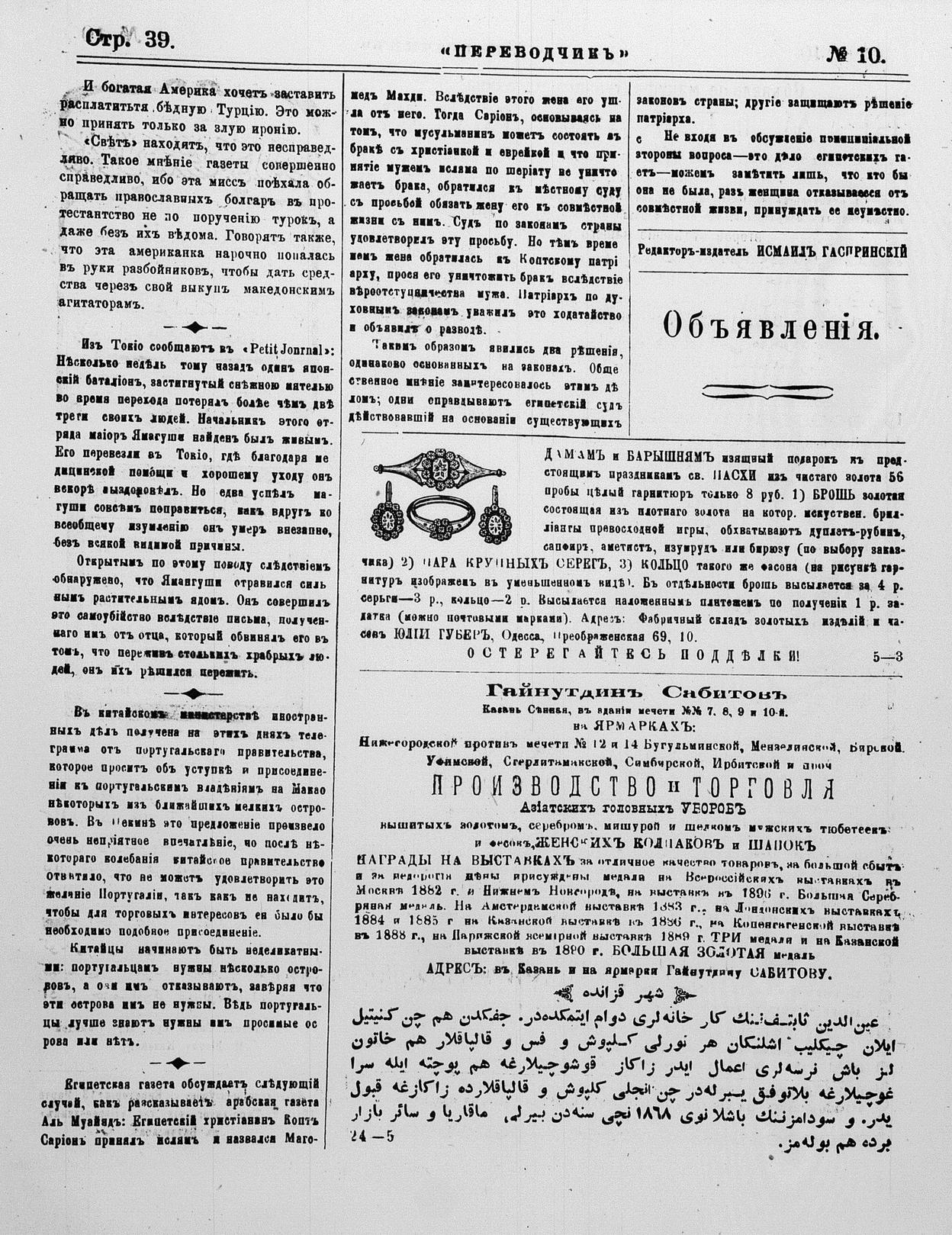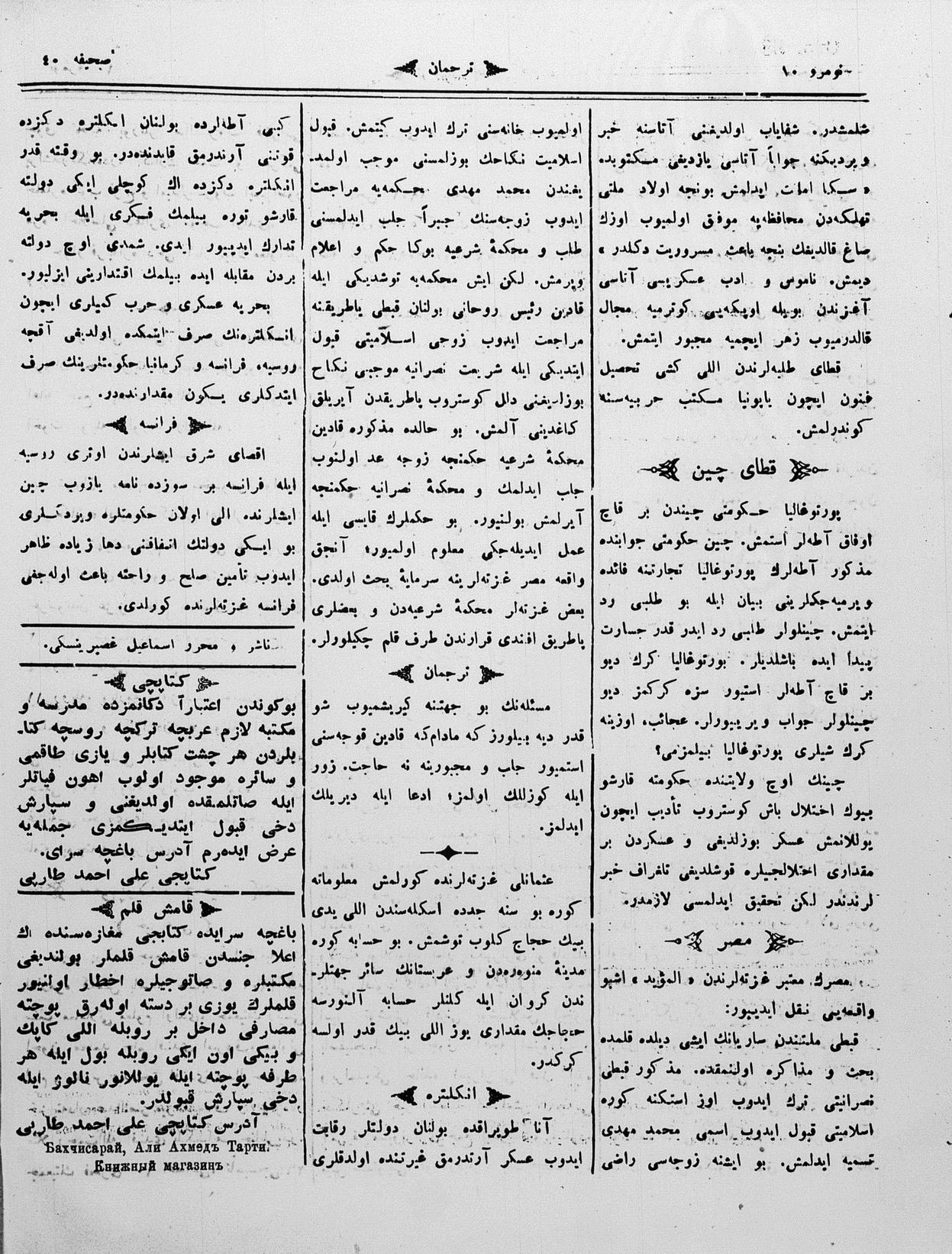 Turkish-Russian newspaper published in Crimea by İsmail Gaspıralı.