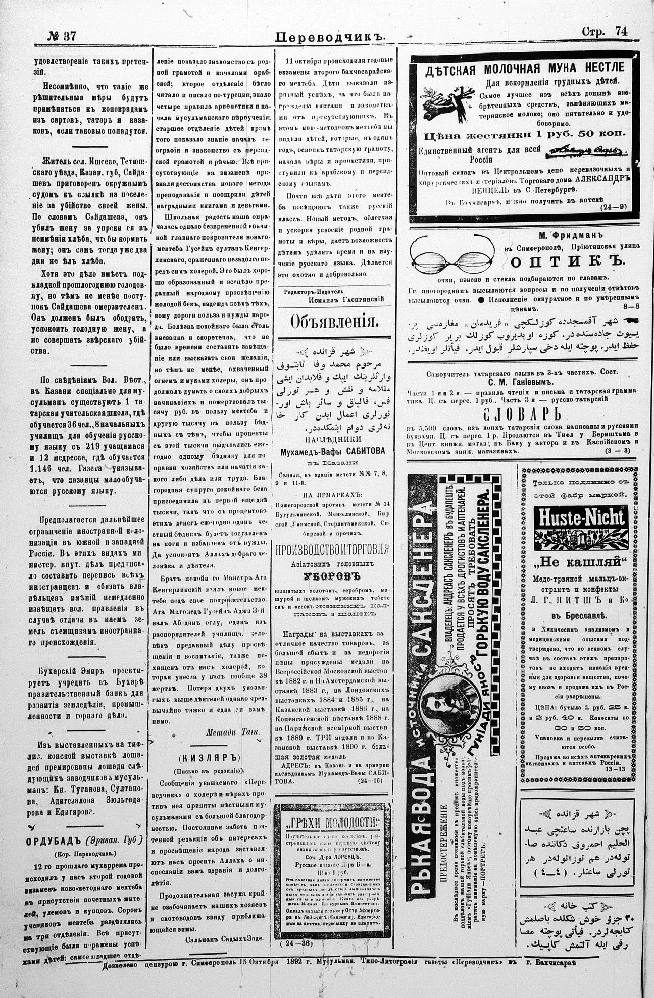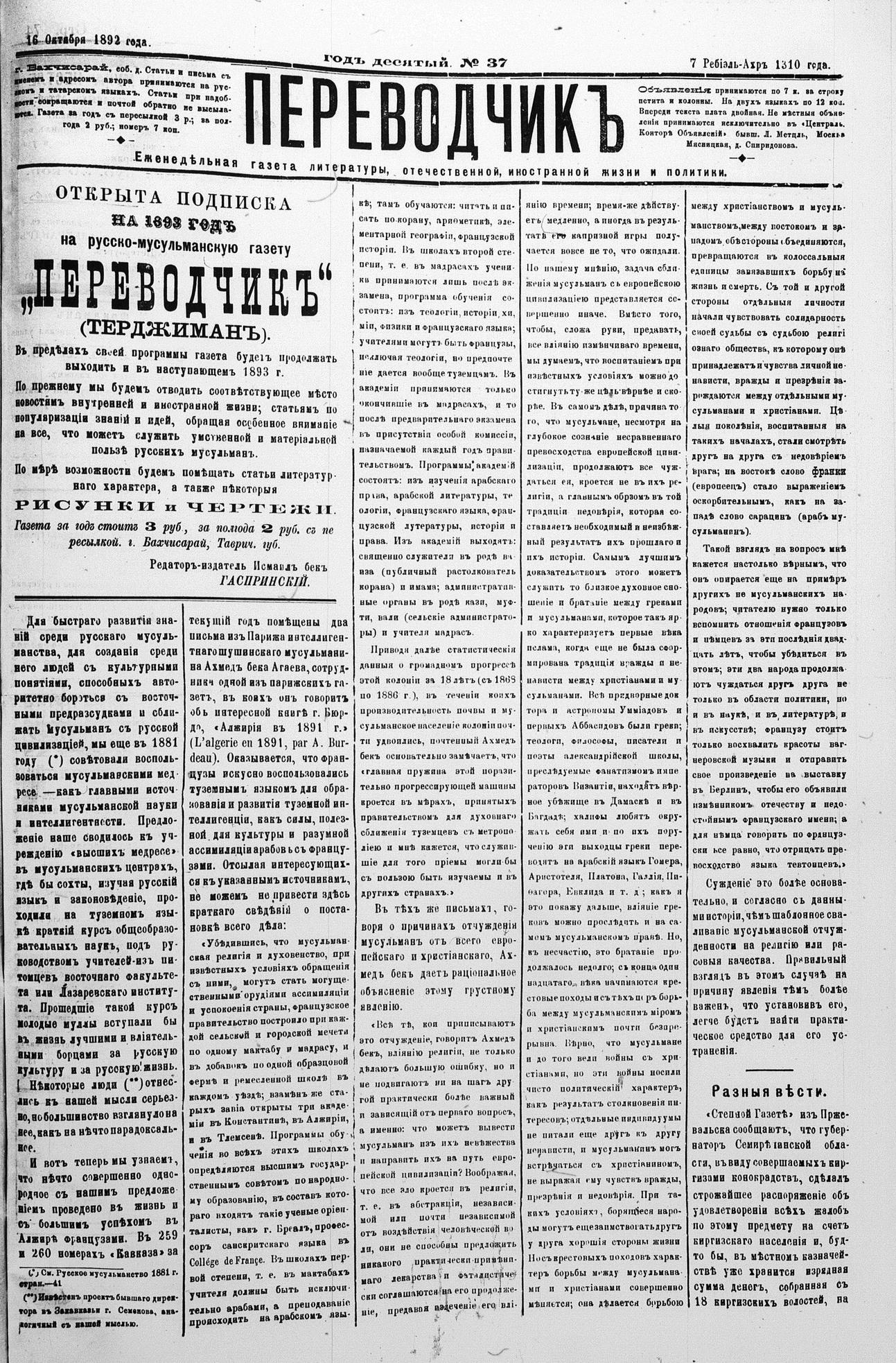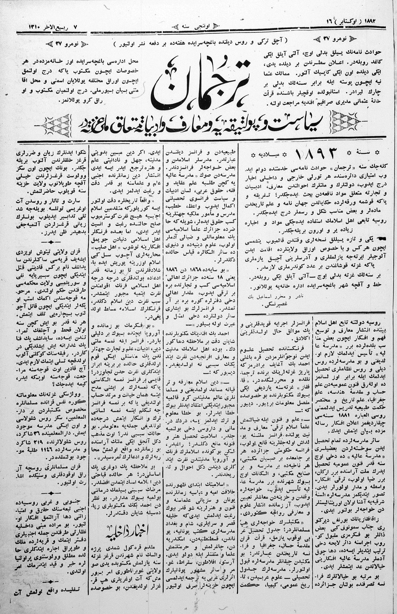 Tercüman, 16 October 1892 Year 10 No 37
