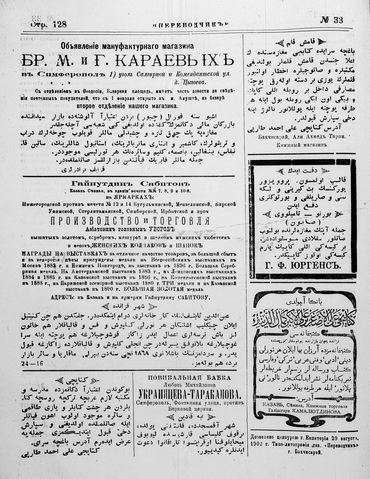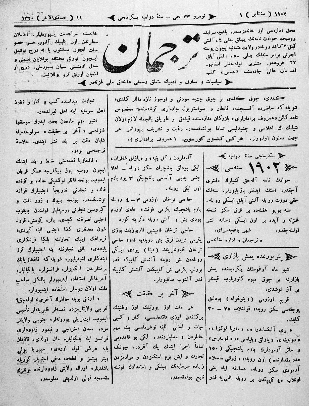 Tercüman, 01 September 1902 Year 20 No 33