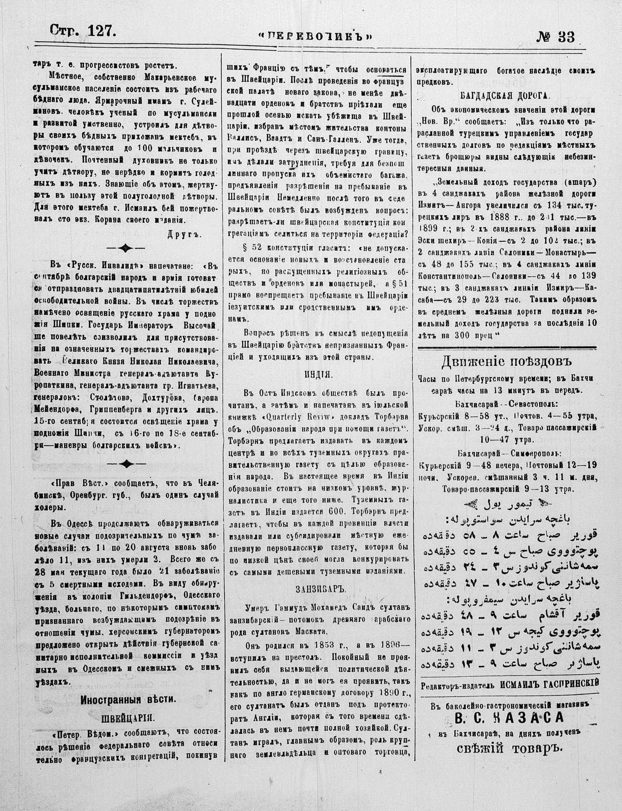 Turkish-Russian newspaper published in Crimea by İsmail Gaspıralı.