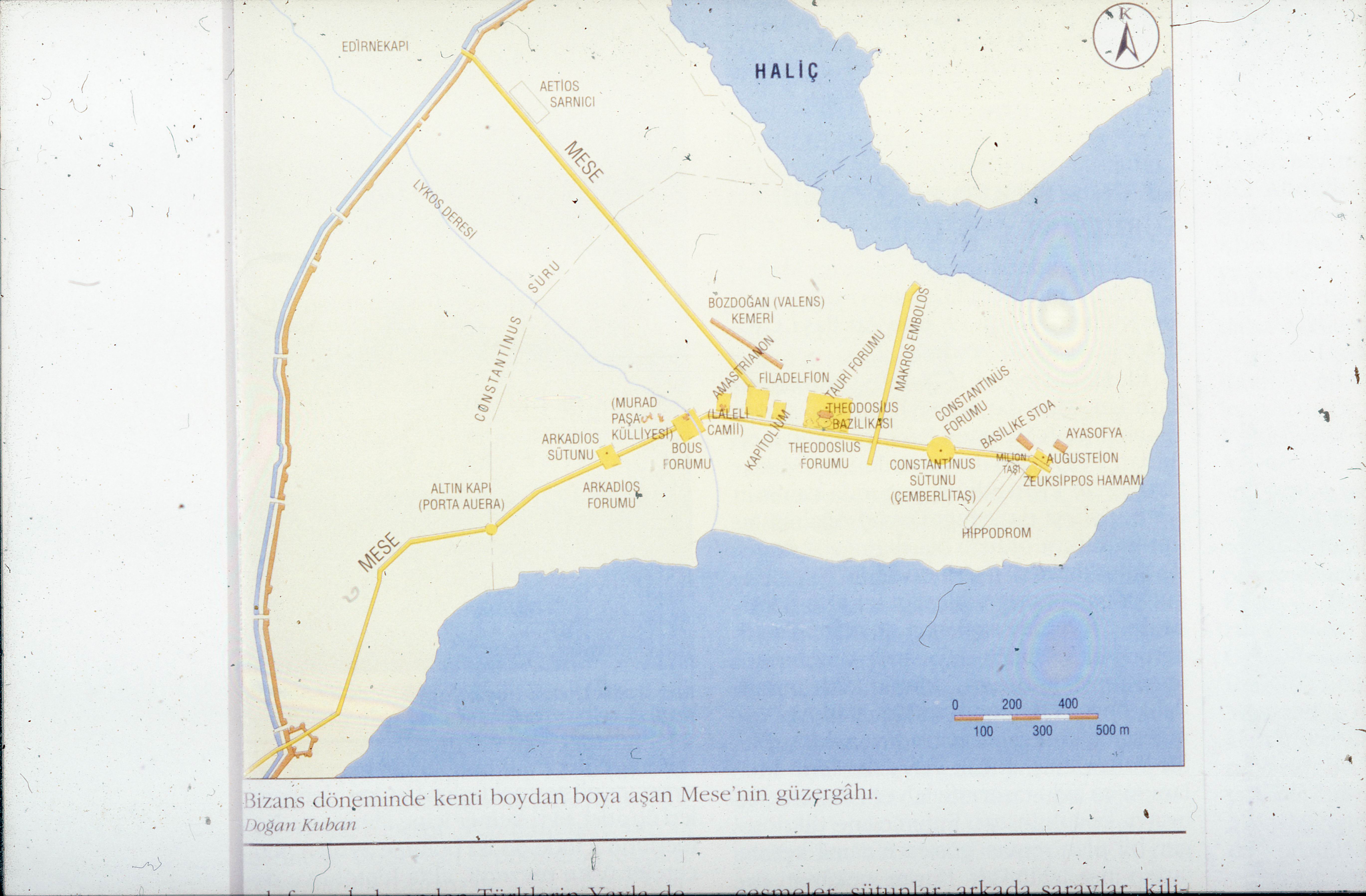 Mese Street which crossed the city during the Byzantine period drawn by Doğan Kuban