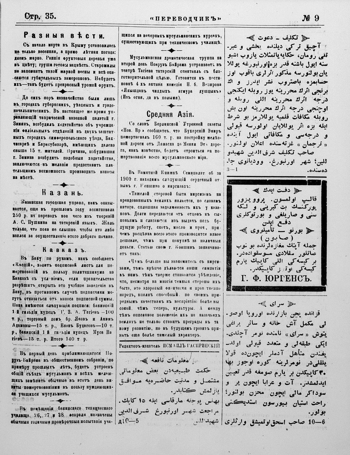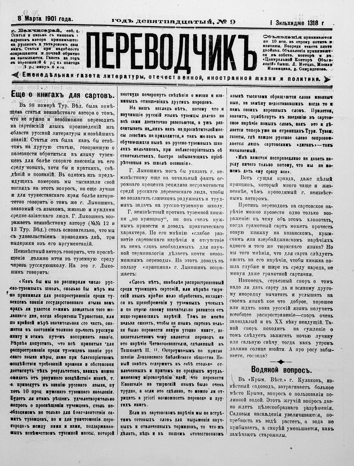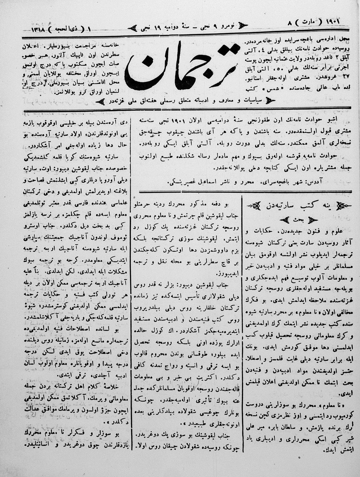Turkish-Russian newspaper published in Crimea by İsmail Gaspıralı.