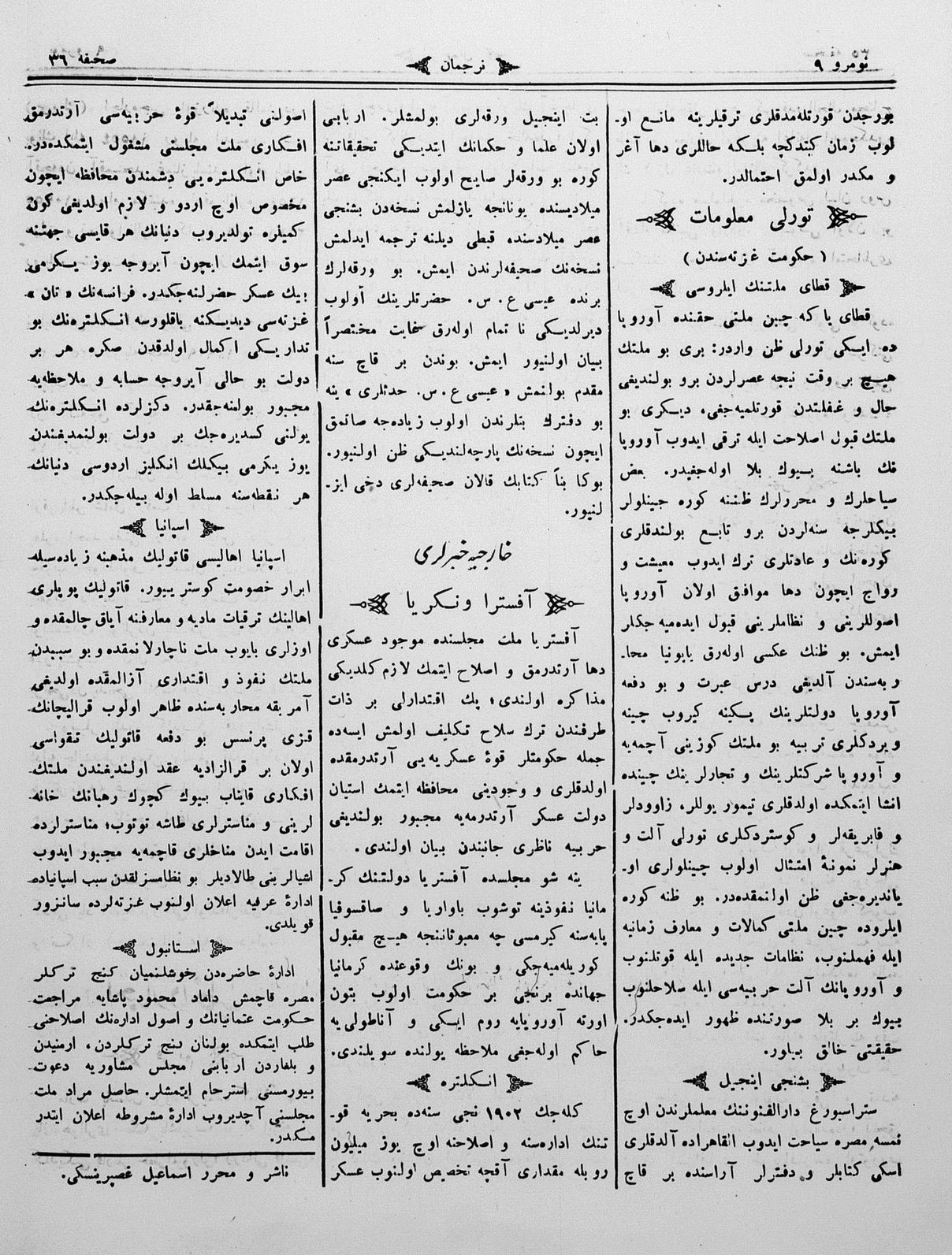 The name of the newspaper changed to Tercüman-ı Ahval-i Zaman in 1905. In 1909, it started to be published under its first name, Tercüman.