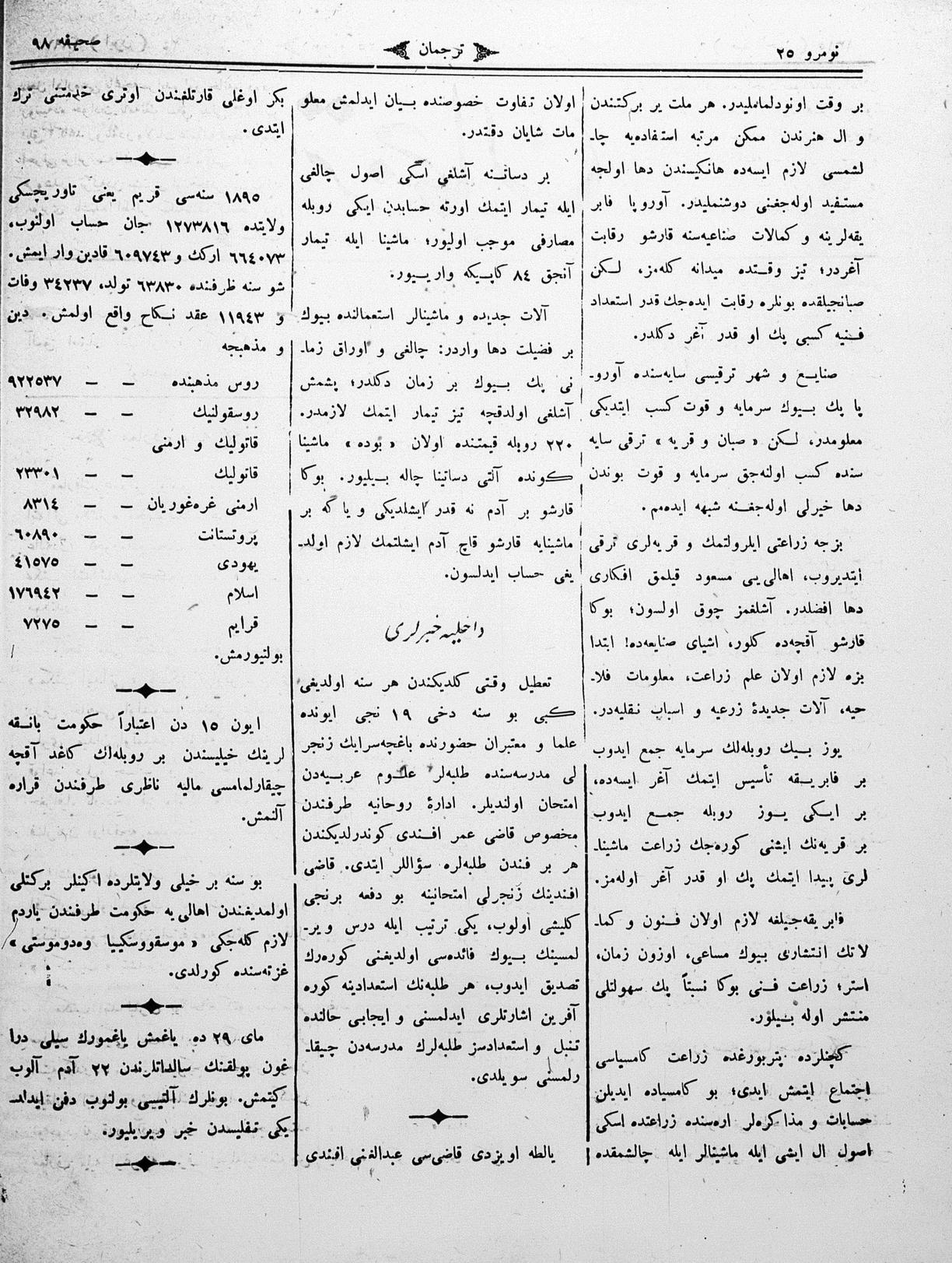 The name of the newspaper changed to Tercüman-ı Ahval-i Zaman in 1905. In 1909, it started to be published under its first name, Tercüman.