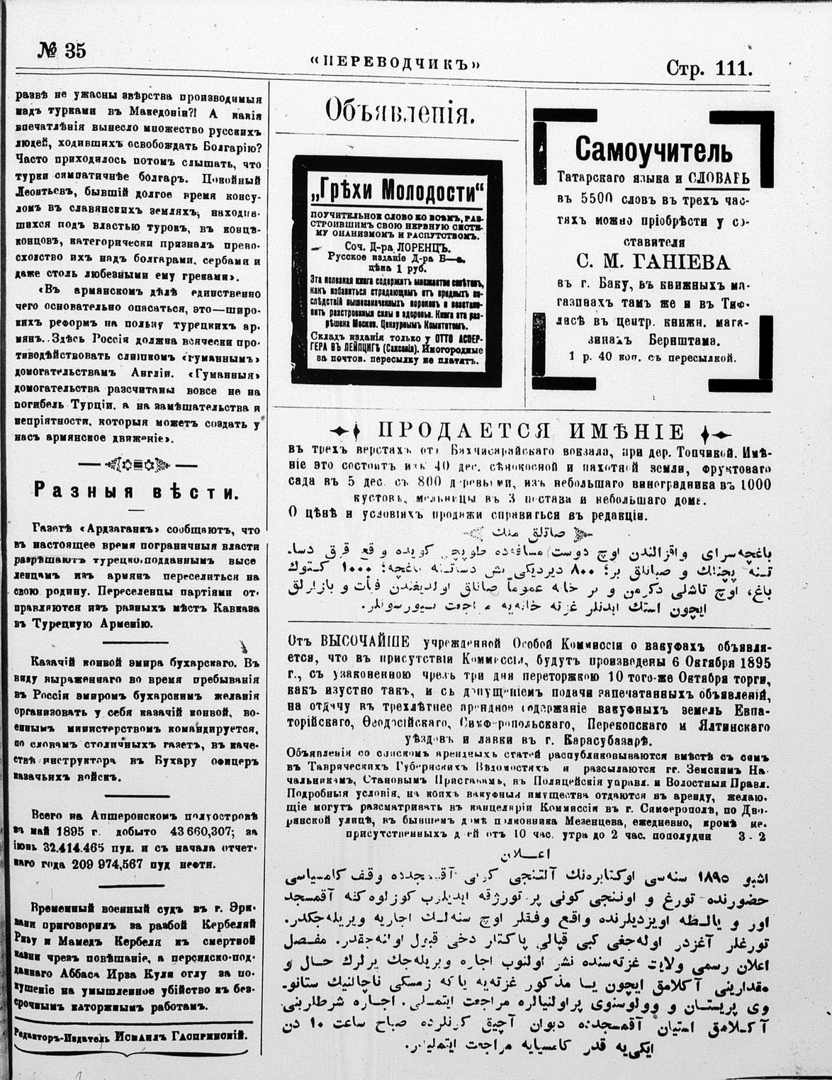 Different spellings of Tercüman: Terdzhiman, Terjuman, Perevodçik and Terjiman.
