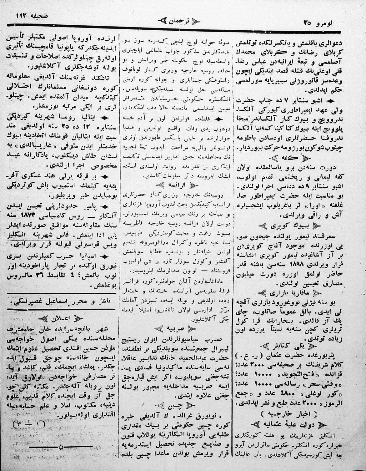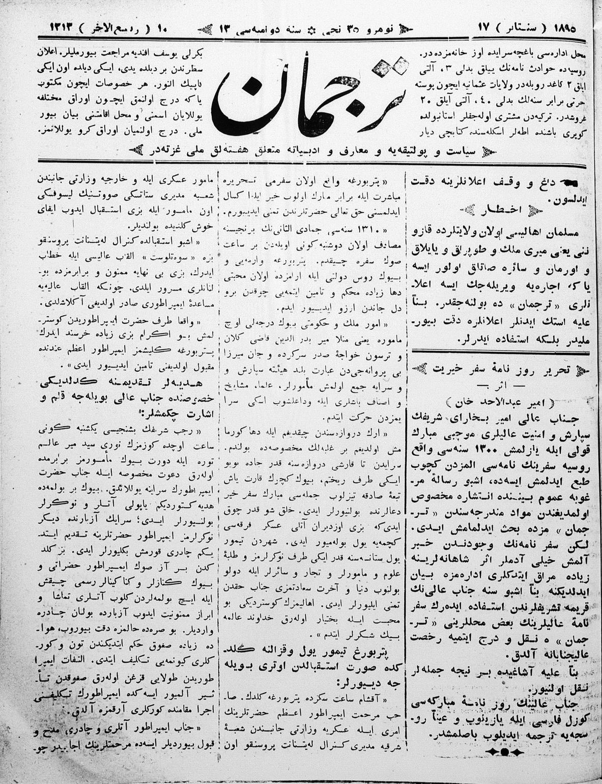 The name of the newspaper changed to Tercüman-ı Ahval-i Zaman in 1905. In 1909, it started to be published under its first name, Tercüman.