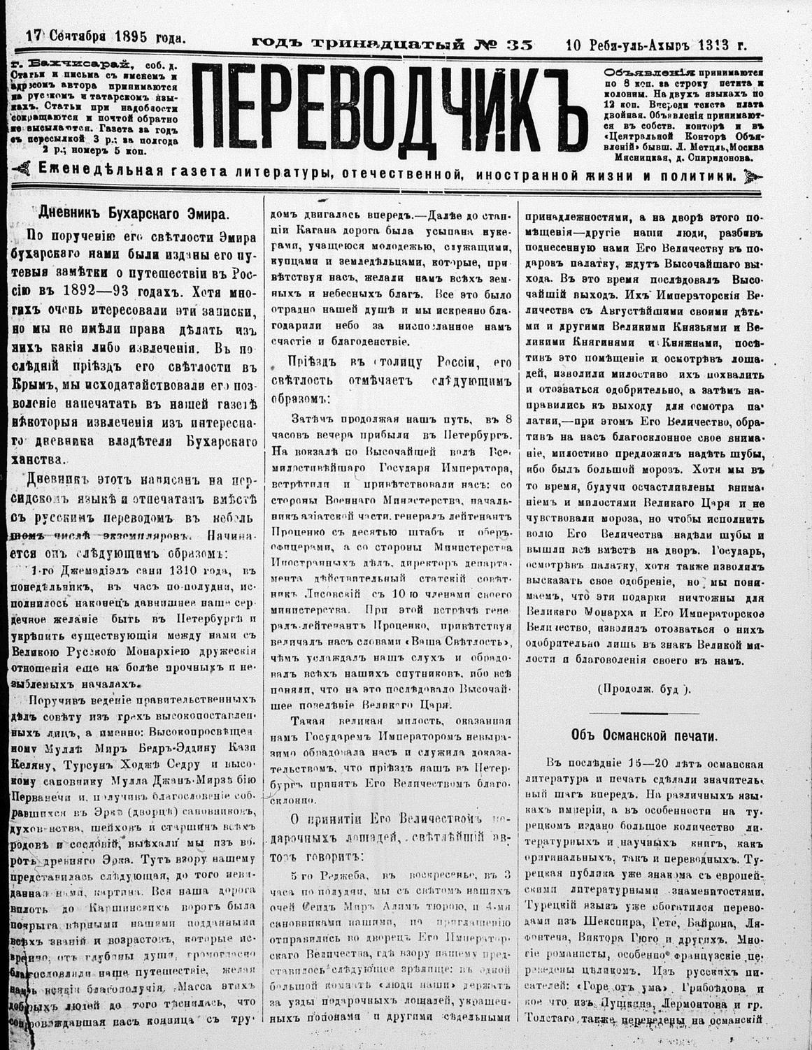 Turkish-Russian newspaper published in Crimea by İsmail Gaspıralı.