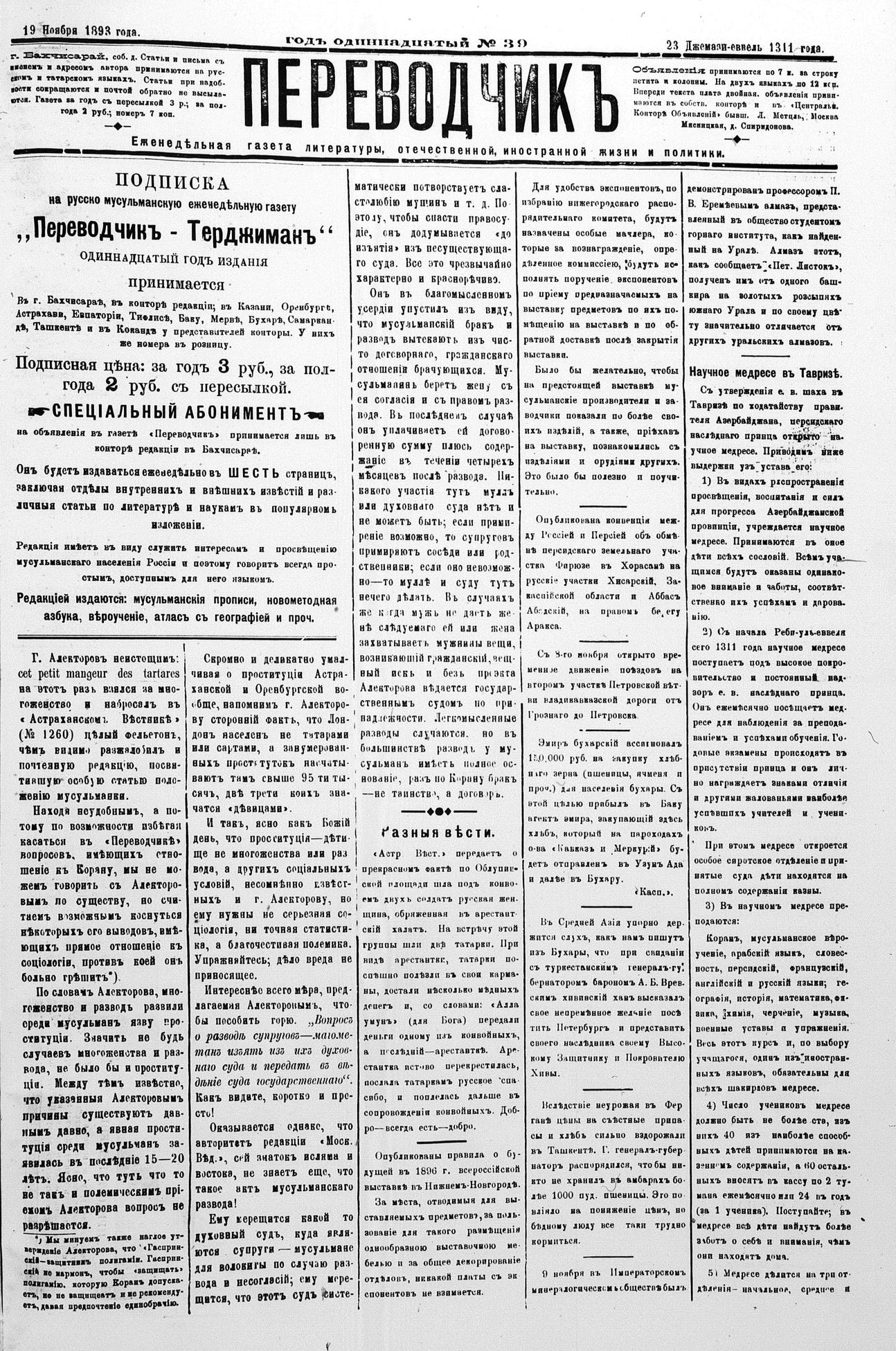 Turkish-Russian newspaper published in Crimea by İsmail Gaspıralı.