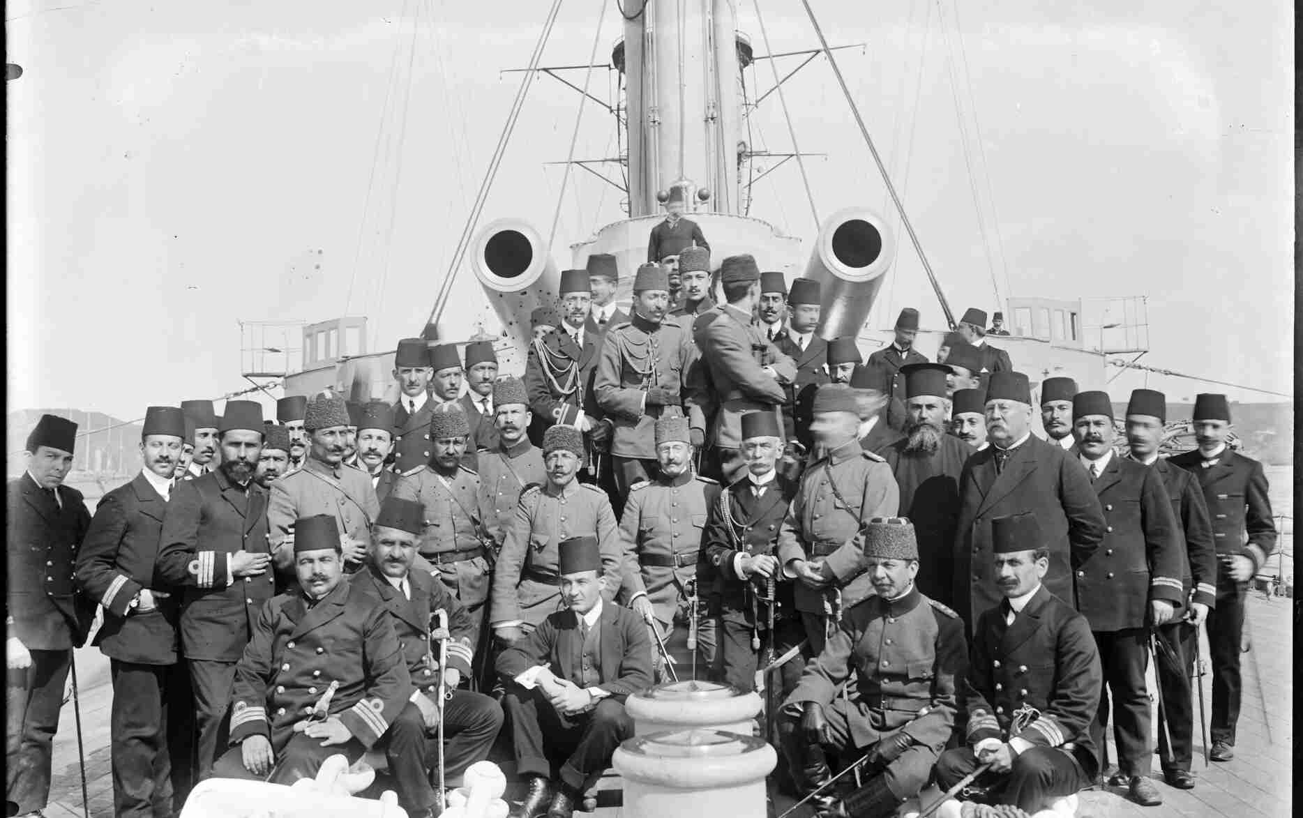 Şevket Turgut Paşa maiyetiyle Ertuğrul Zırhlısı`nda