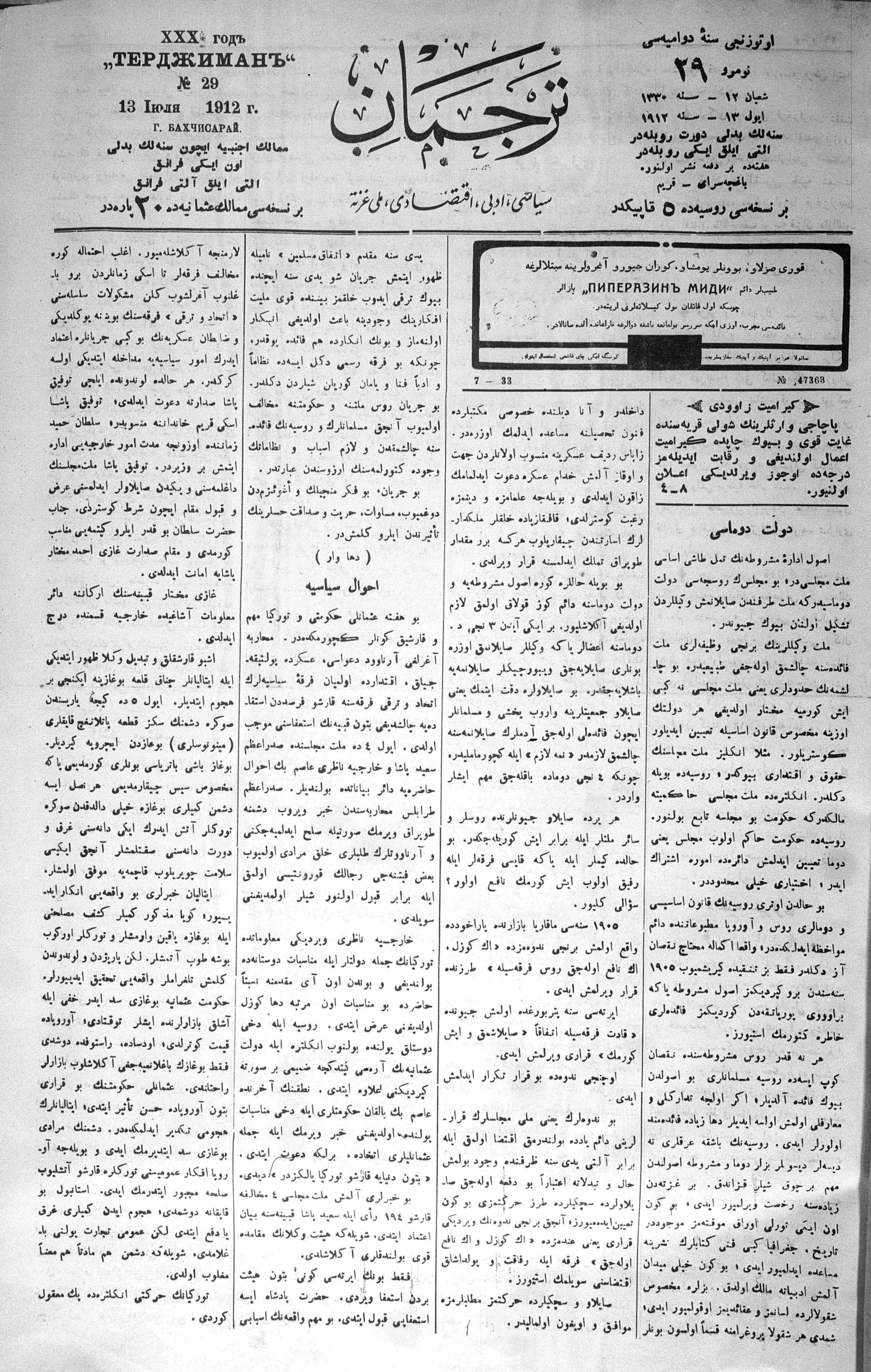 Tercüman, 13 July 1912 Year 30 No 29