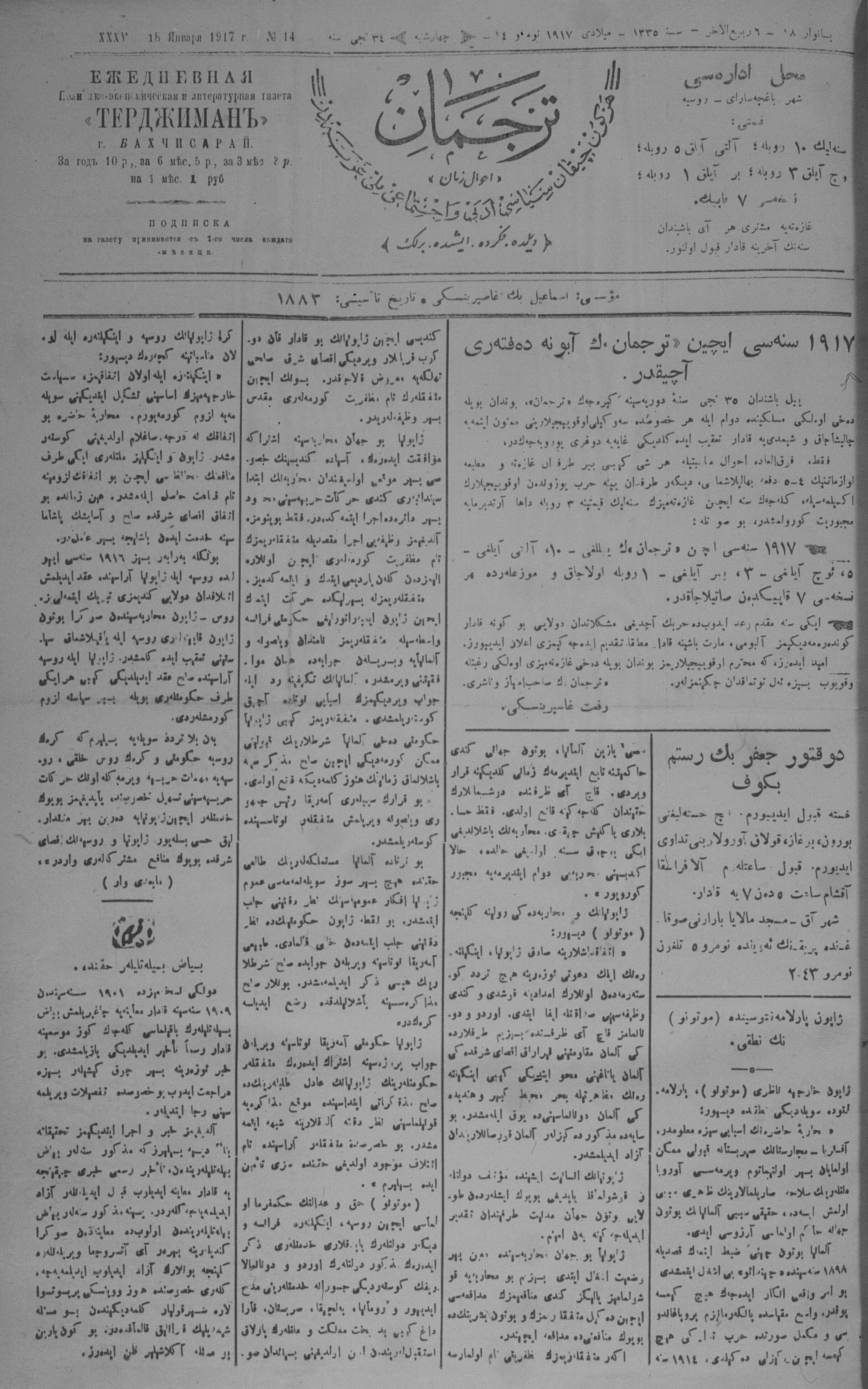 Tercüman, 18 January 1917 Year 35 No 14