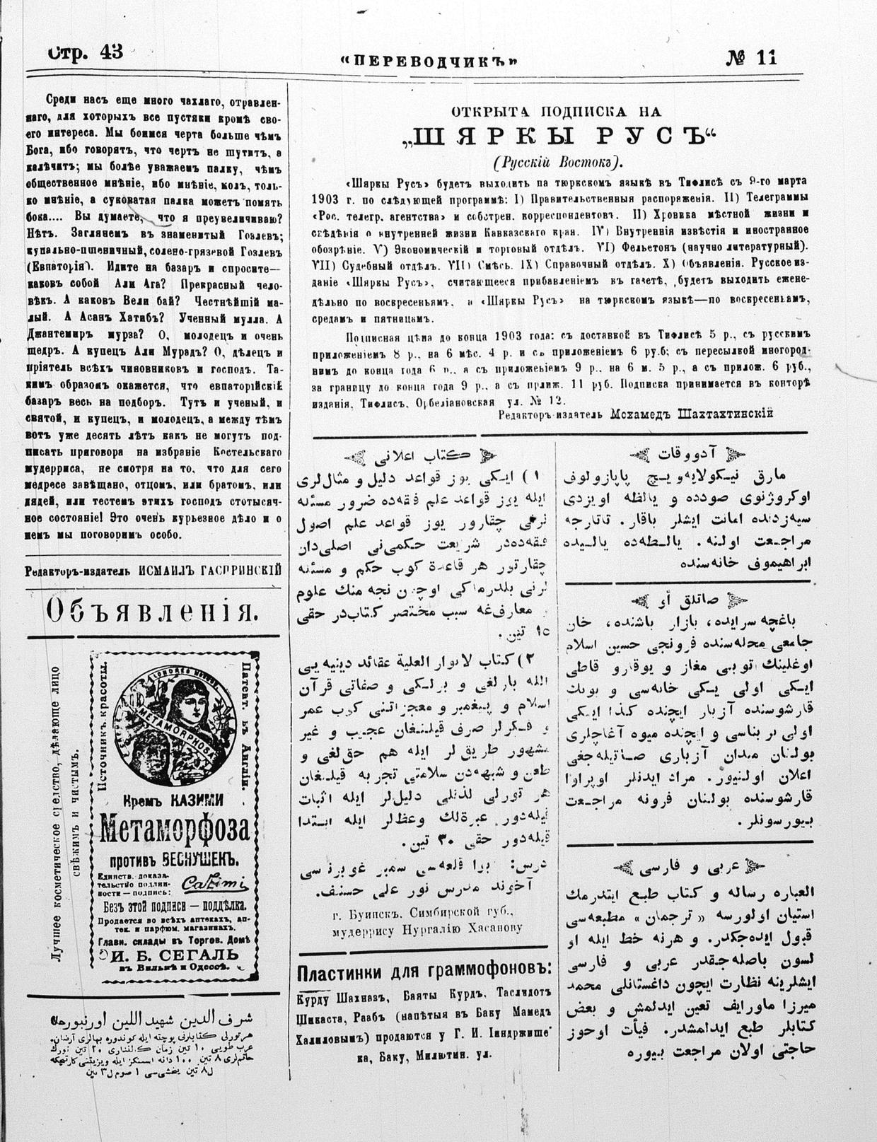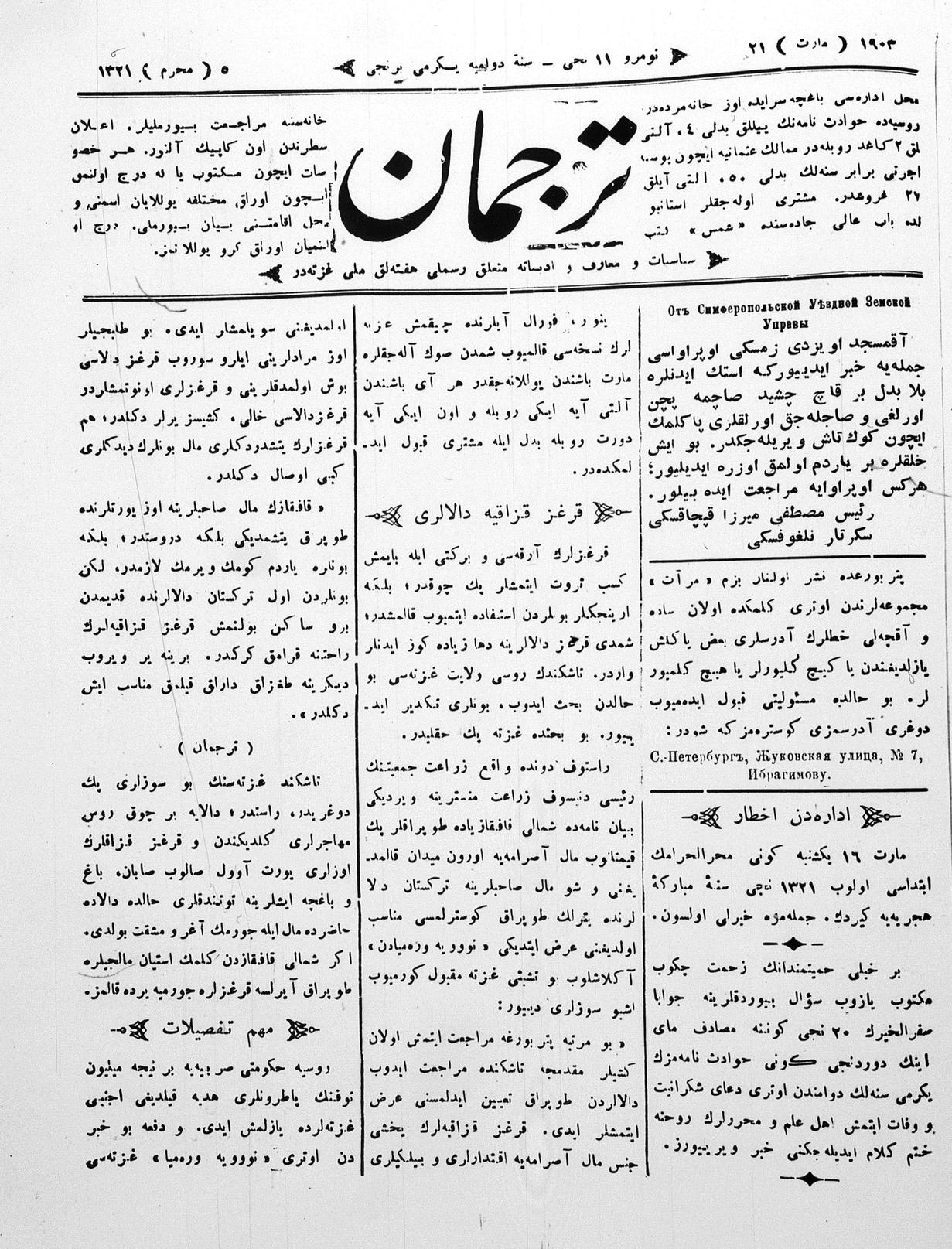 Turkish-Russian newspaper published in Crimea by İsmail Gaspıralı.