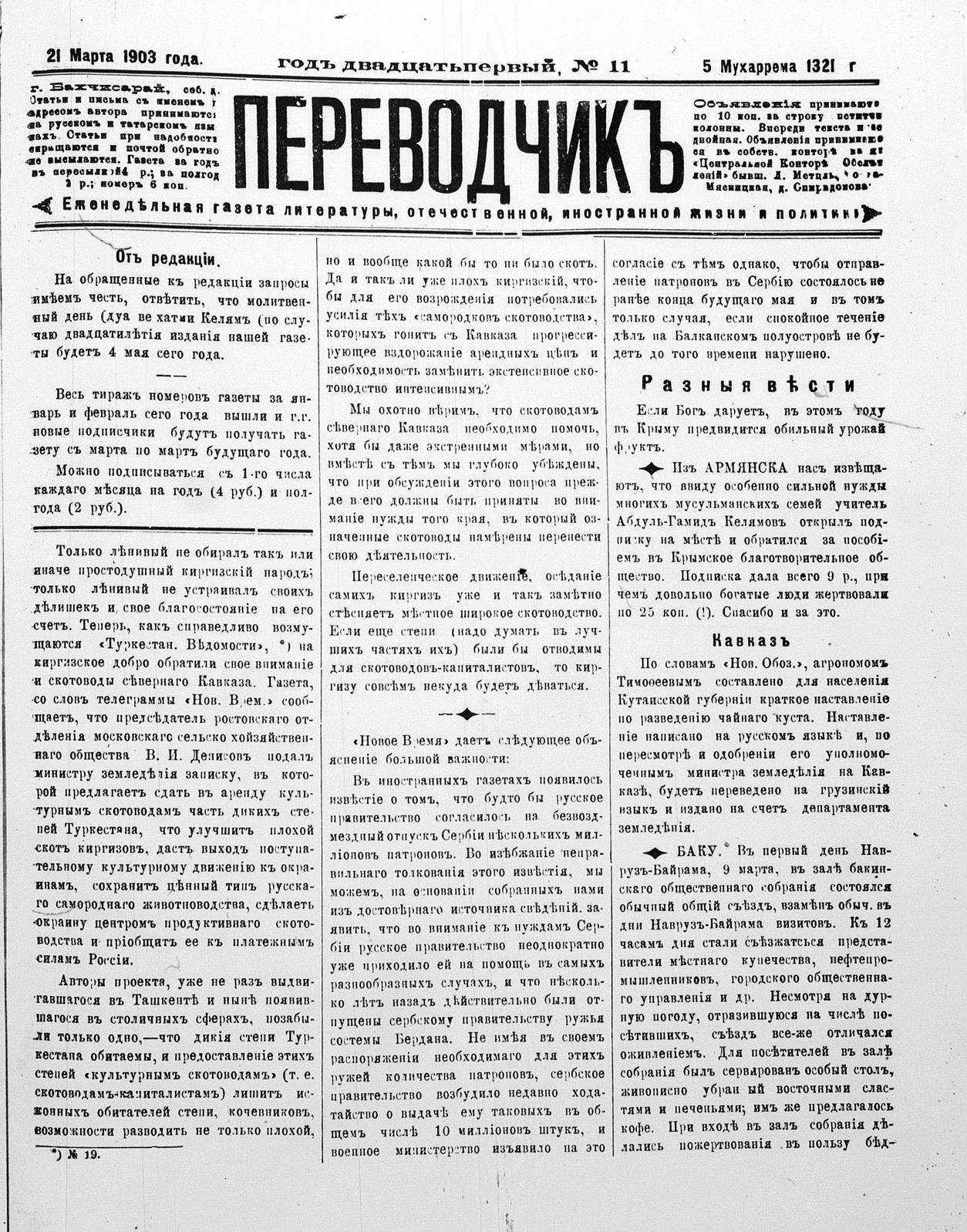 Tercüman, 21 March 1903 Year 21 No 11