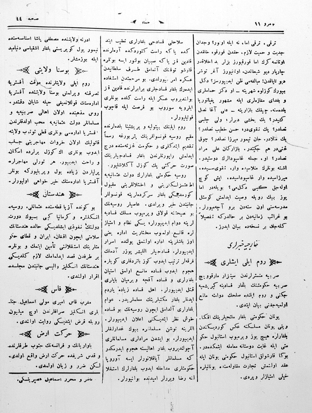 The name of the newspaper changed to Tercüman-ı Ahval-i Zaman in 1905. In 1909, it started to be published under its first name, Tercüman.