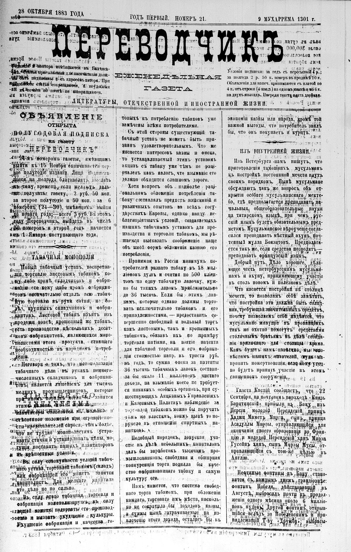 Turkish-Russian newspaper published in Crimea by İsmail Gaspıralı.