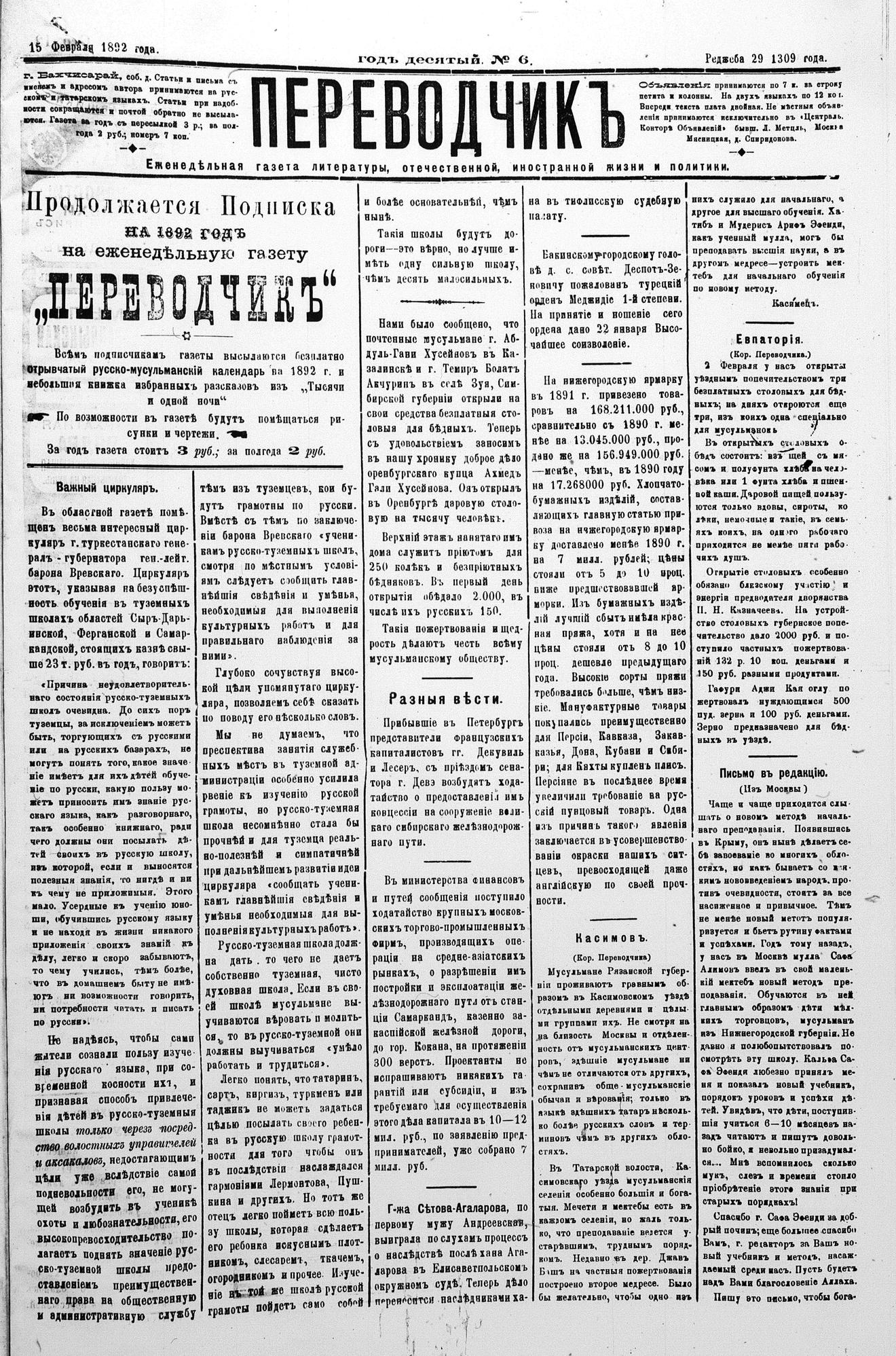 Turkish-Russian newspaper published in Crimea by İsmail Gaspıralı.