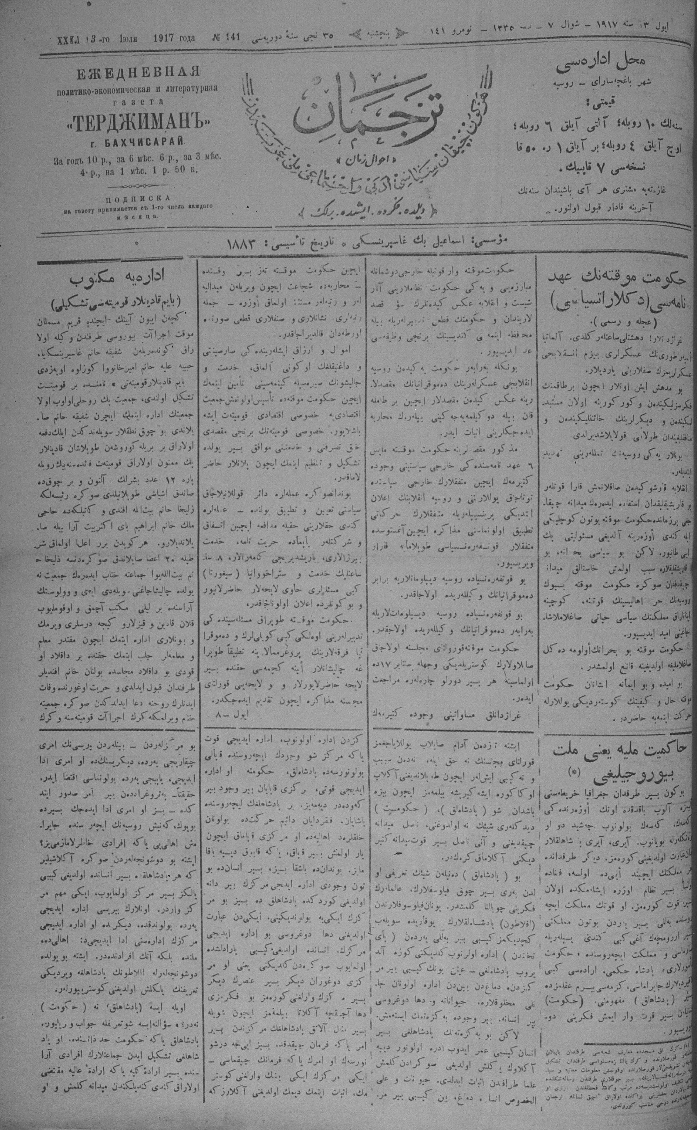 Turkish-Russian newspaper published in Crimea by İsmail Gaspıralı.