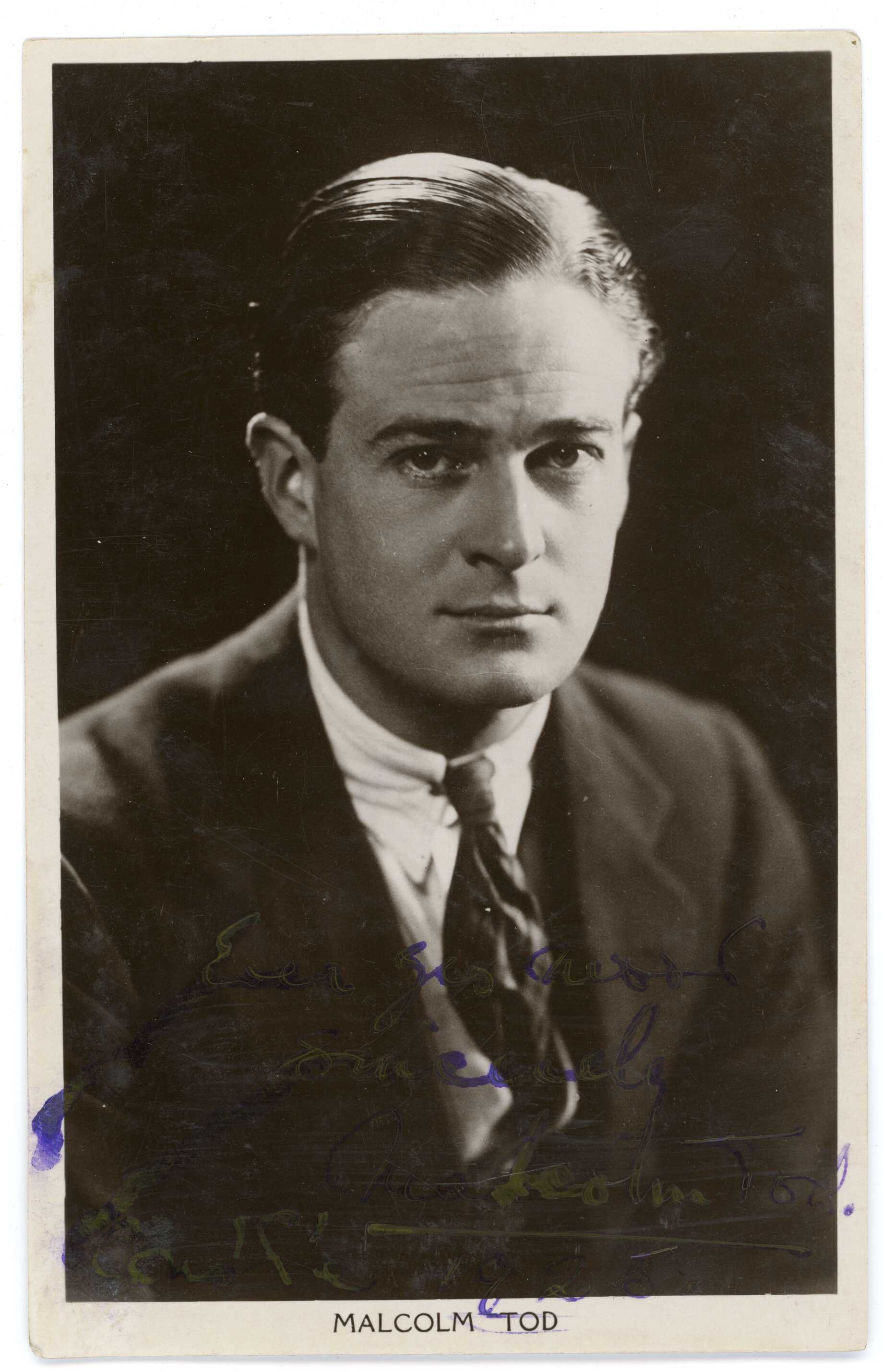İngiliz Sessiz Film Yıldızı Malcolm Tod'un Ekrem Rüştü Akömer'e imzalı ve ithaflı fotoğrafı