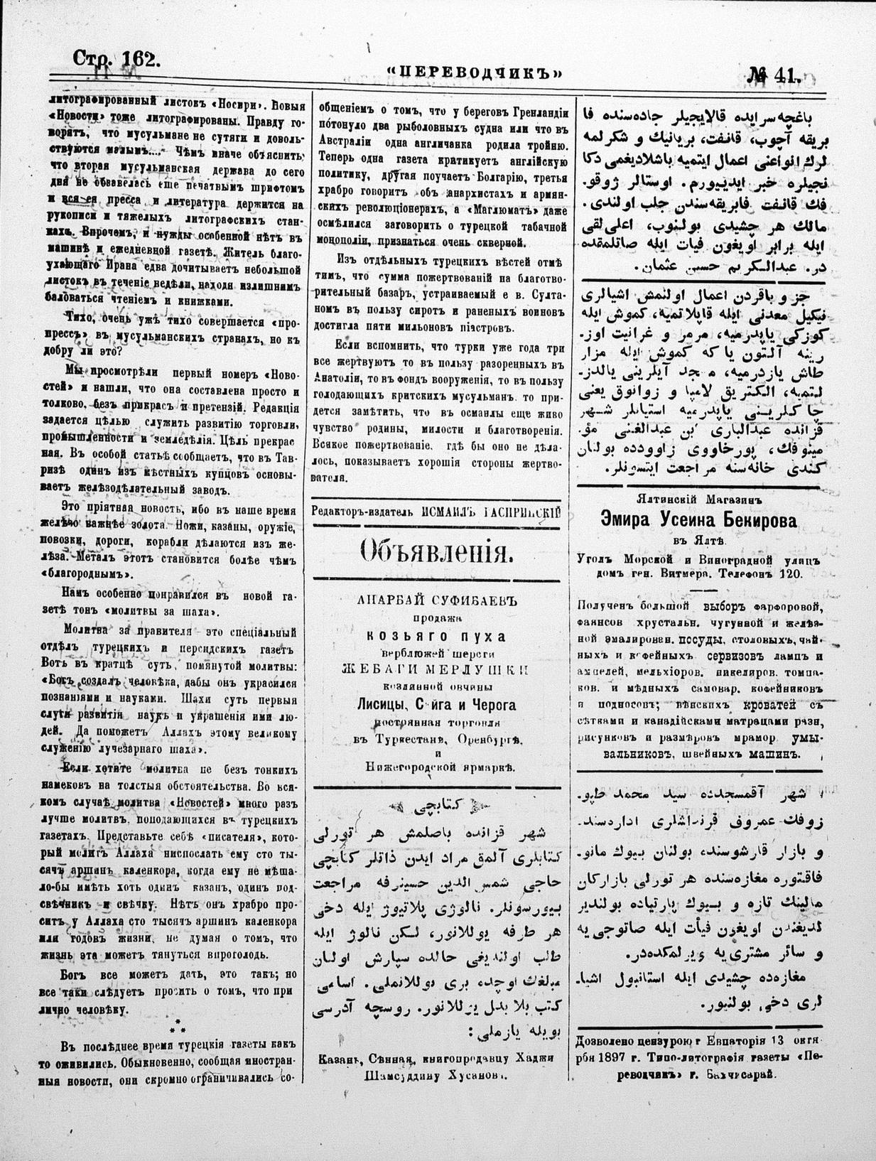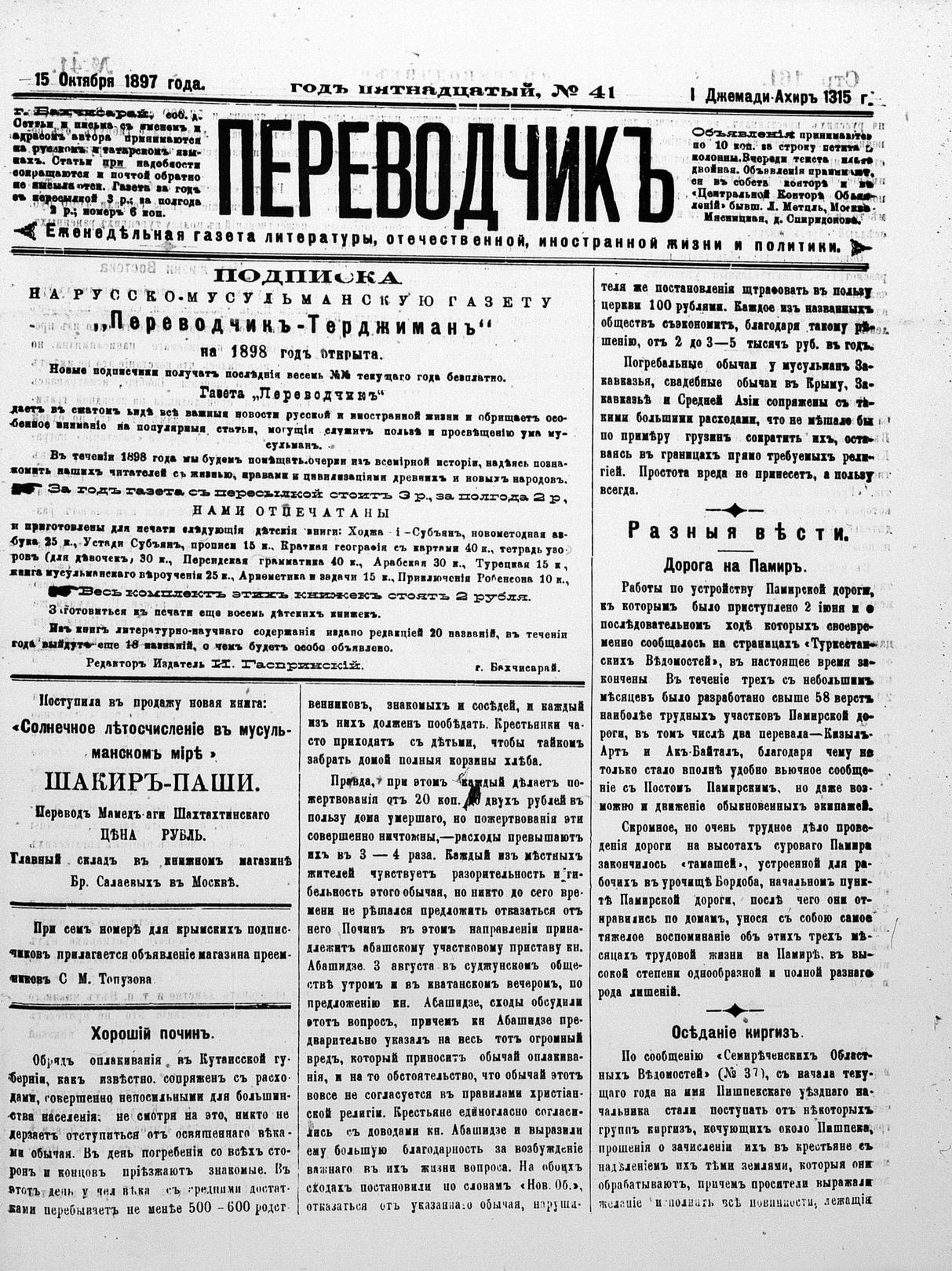 Turkish-Russian newspaper published in Crimea by İsmail Gaspıralı.