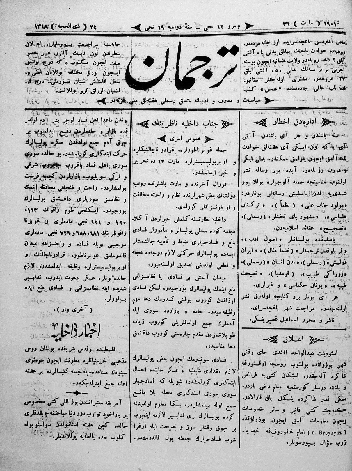 The name of the newspaper changed to Tercüman-ı Ahval-i Zaman in 1905. In 1909, it started to be published under its first name, Tercüman.
