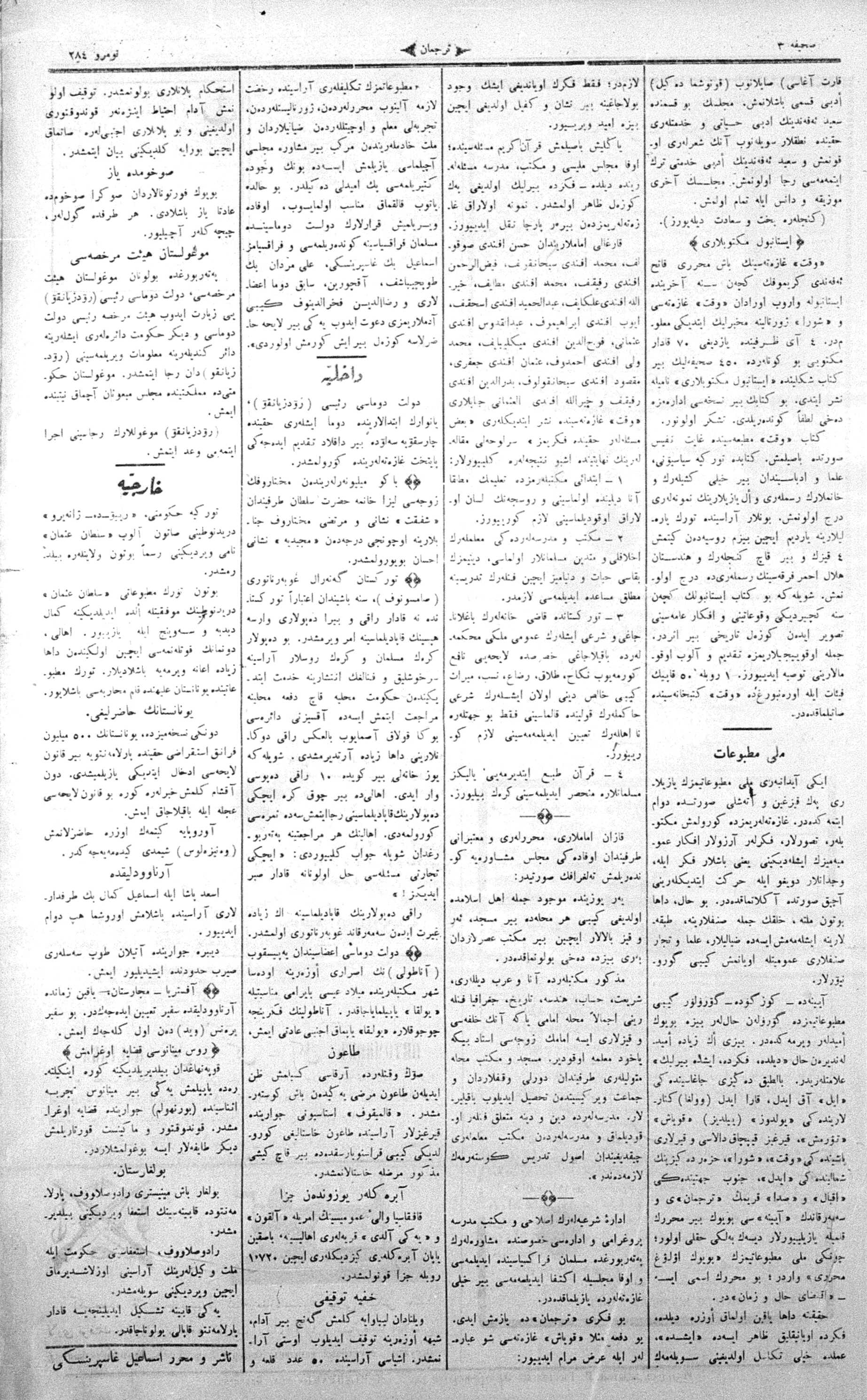 Turkish-Russian newspaper published in Crimea by İsmail Gaspıralı.