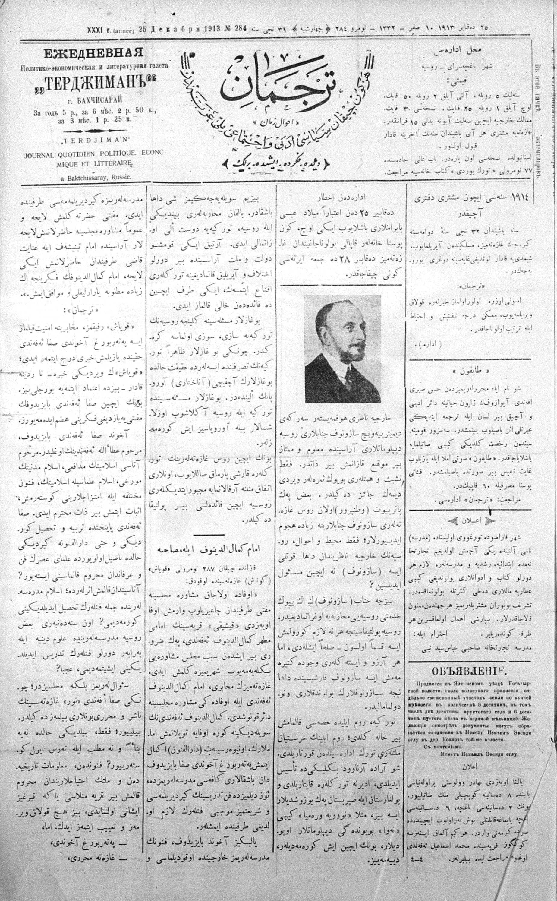 Tercüman, 25 December 1913 Year 31 No 284