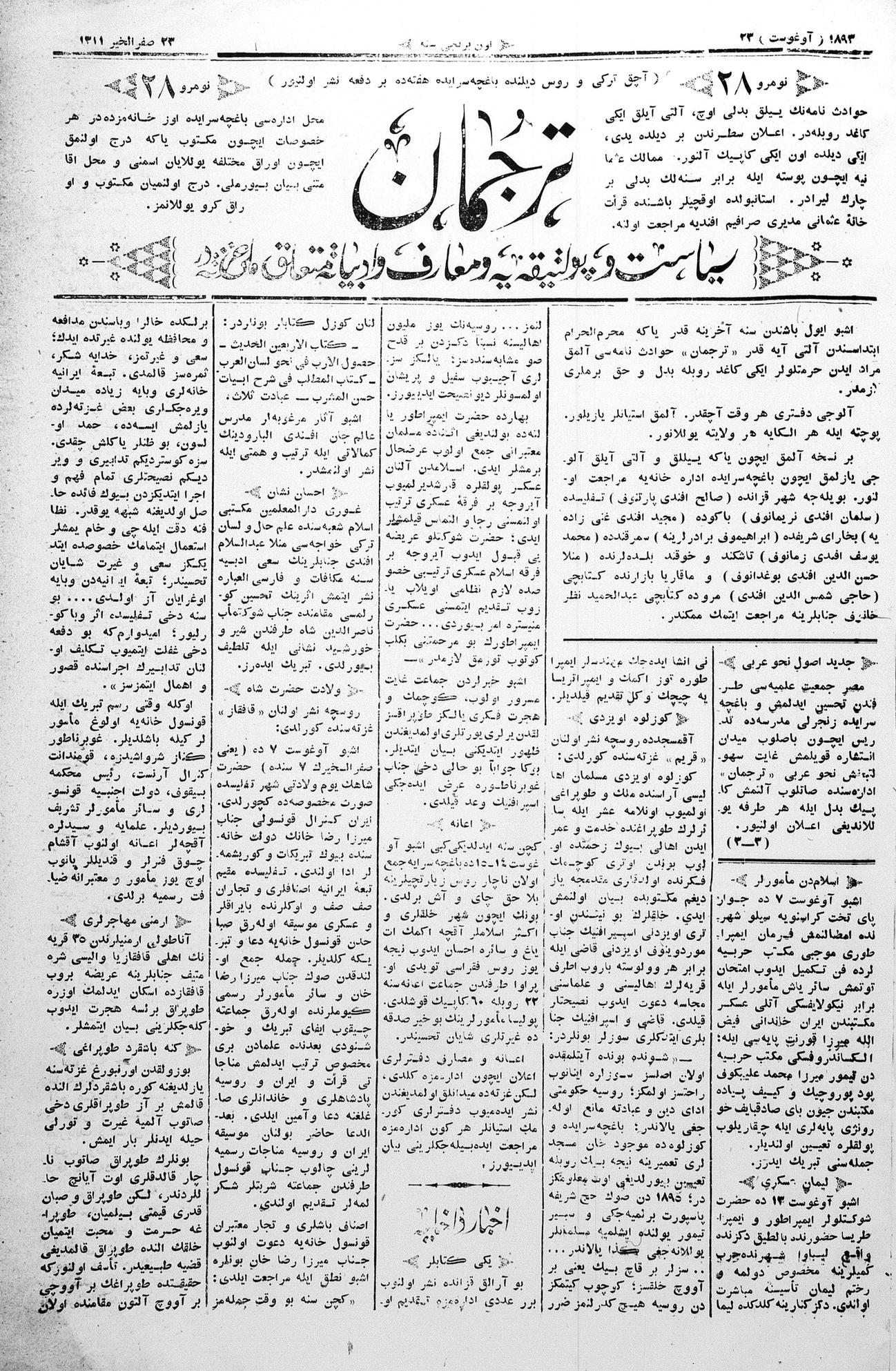 The name of the newspaper changed to Tercüman-ı Ahval-i Zaman in 1905. In 1909, it started to be published under its first name, Tercüman.
