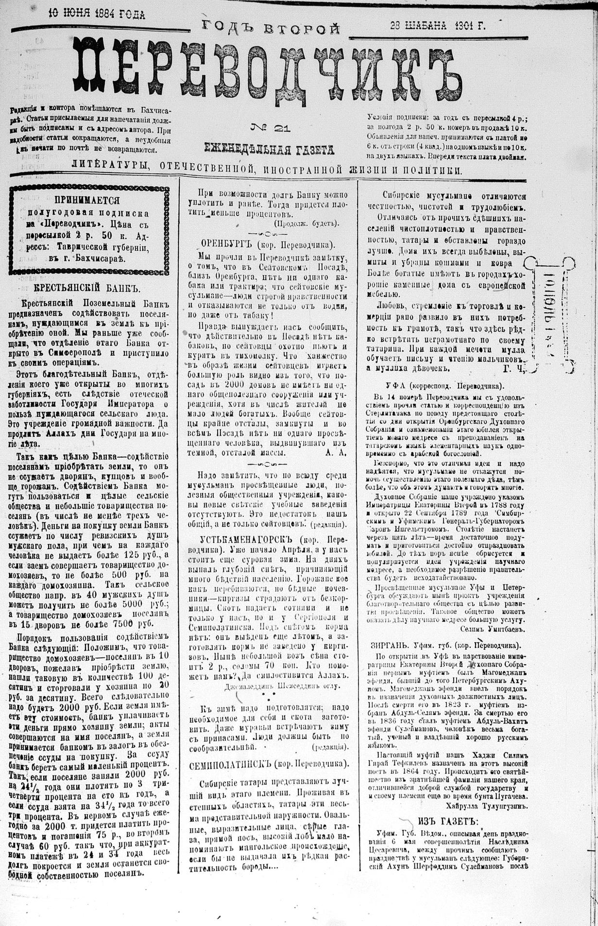 Turkish-Russian newspaper published in Crimea by İsmail Gaspıralı.