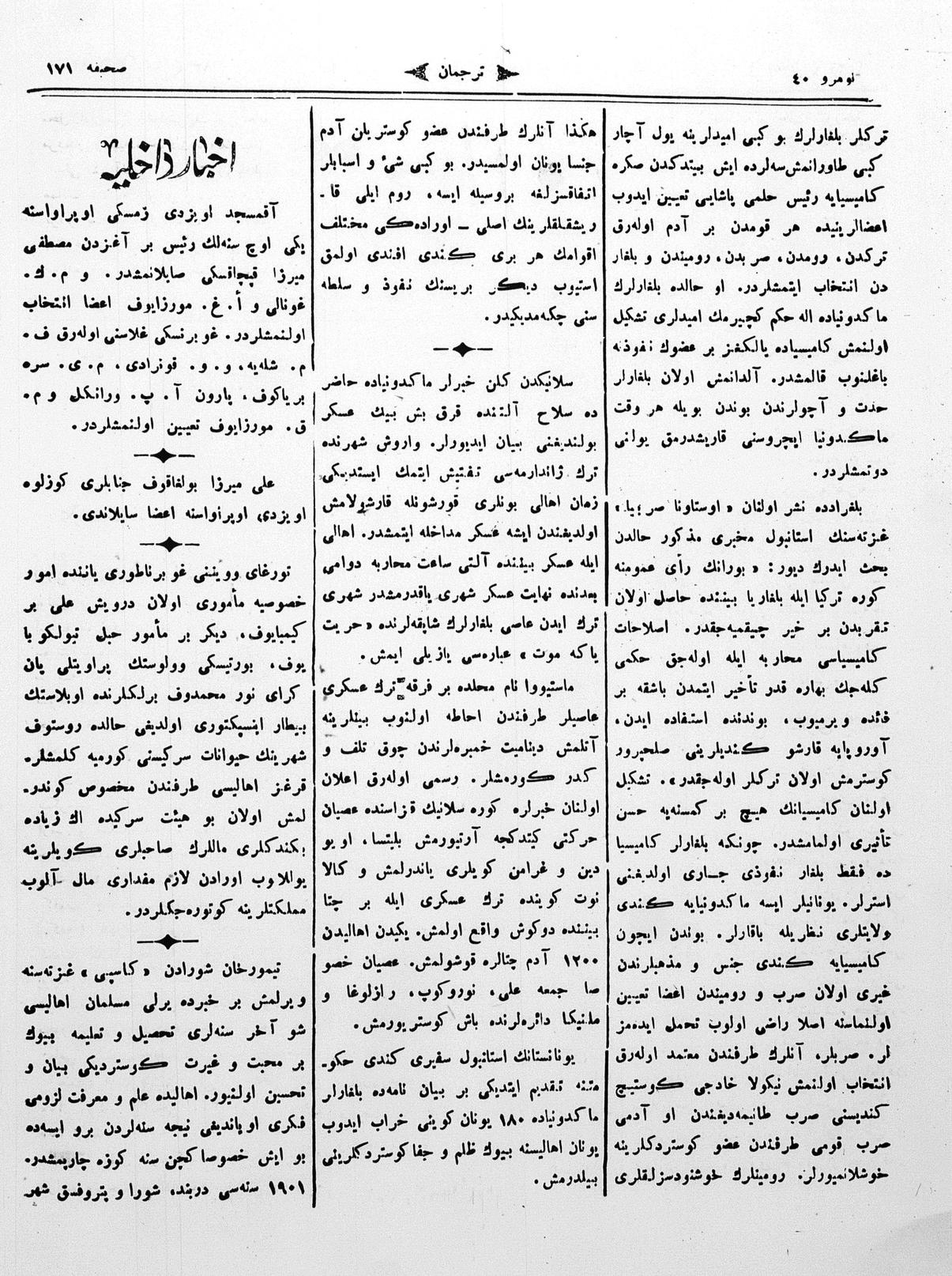 The name of the newspaper changed to Tercüman-ı Ahval-i Zaman in 1905. In 1909, it started to be published under its first name, Tercüman.